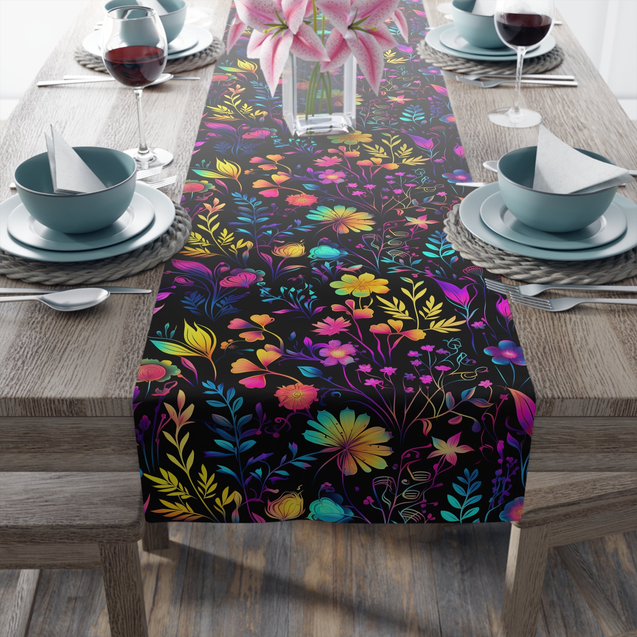 Bespattered Facade Neon Flowers Table Runner (2 sizes)