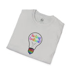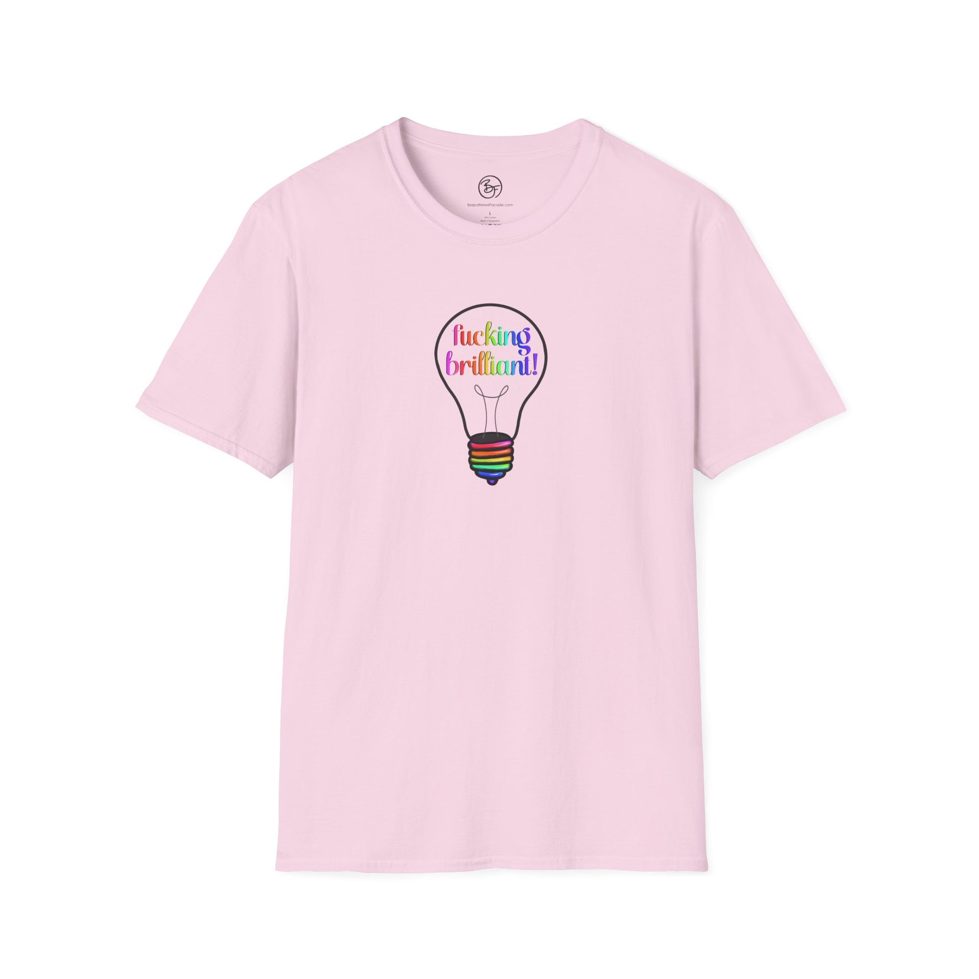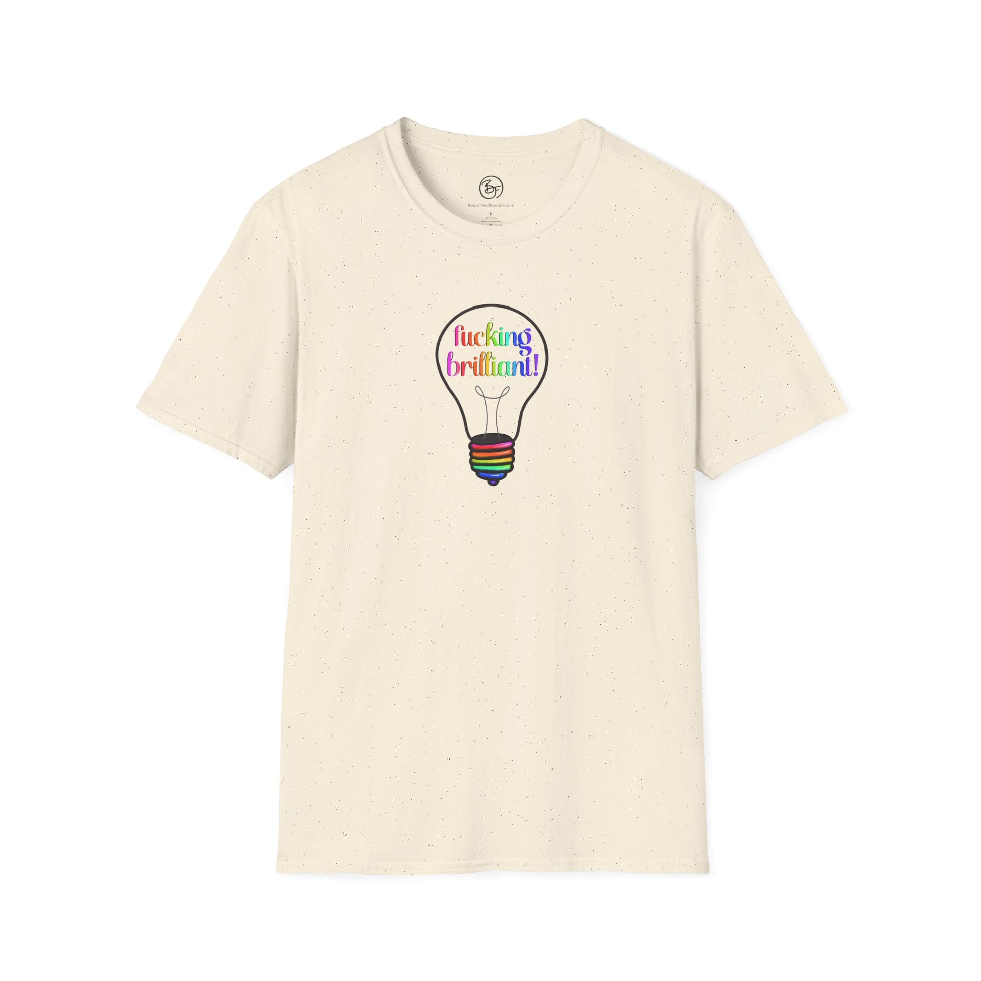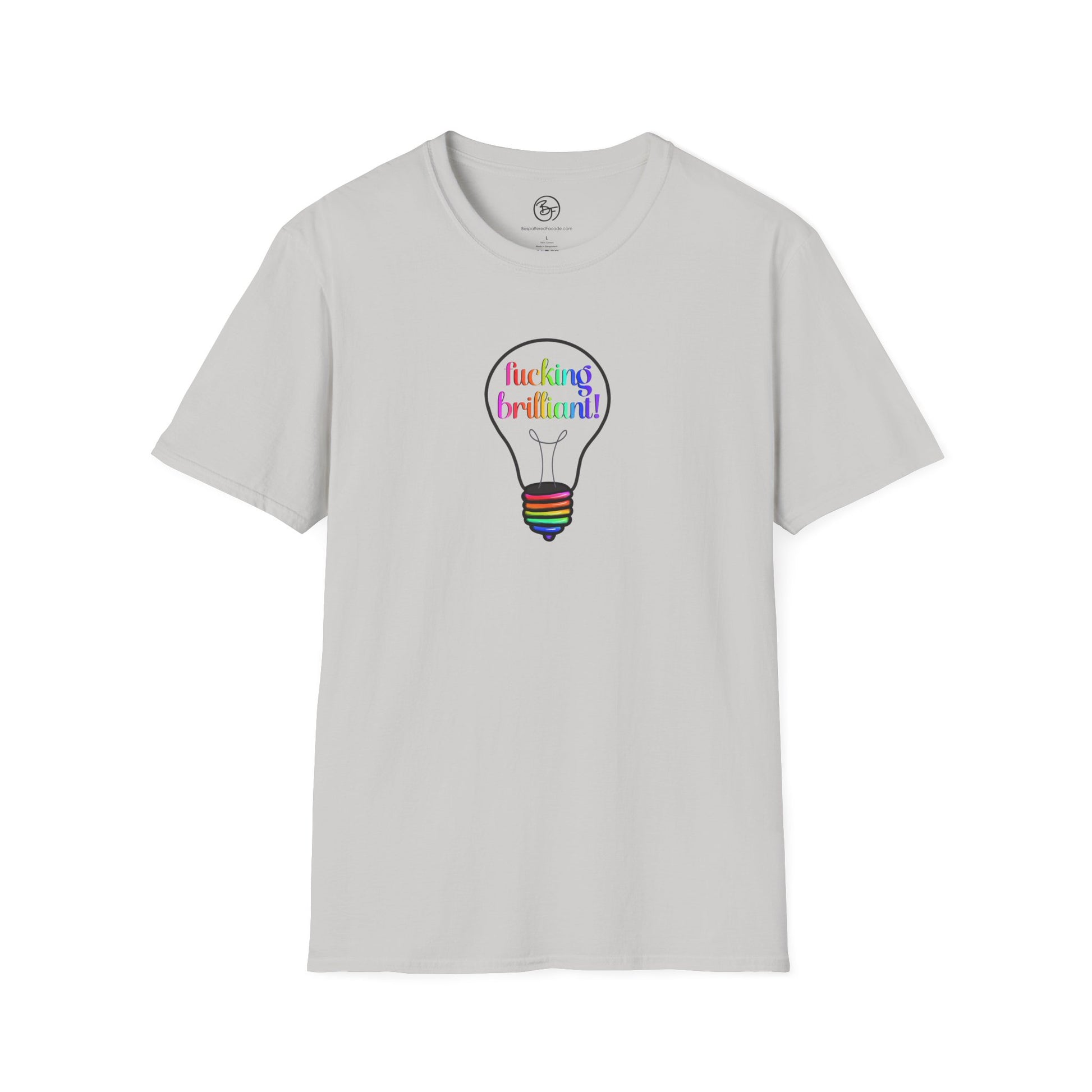 This unisex soft-style t-shirt will let everyone know you're brilliant. Made from very soft materials, this tee is 100% cotton for solid colors. Heather colors and sports grey include polyester. The shoulders have twill tape for improved durability. There are no side seams. The collar is made with ribbed knitting to prevent curling damage.
