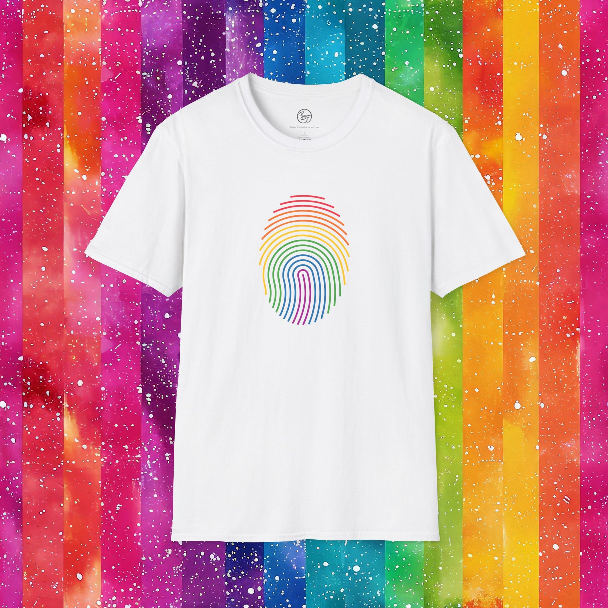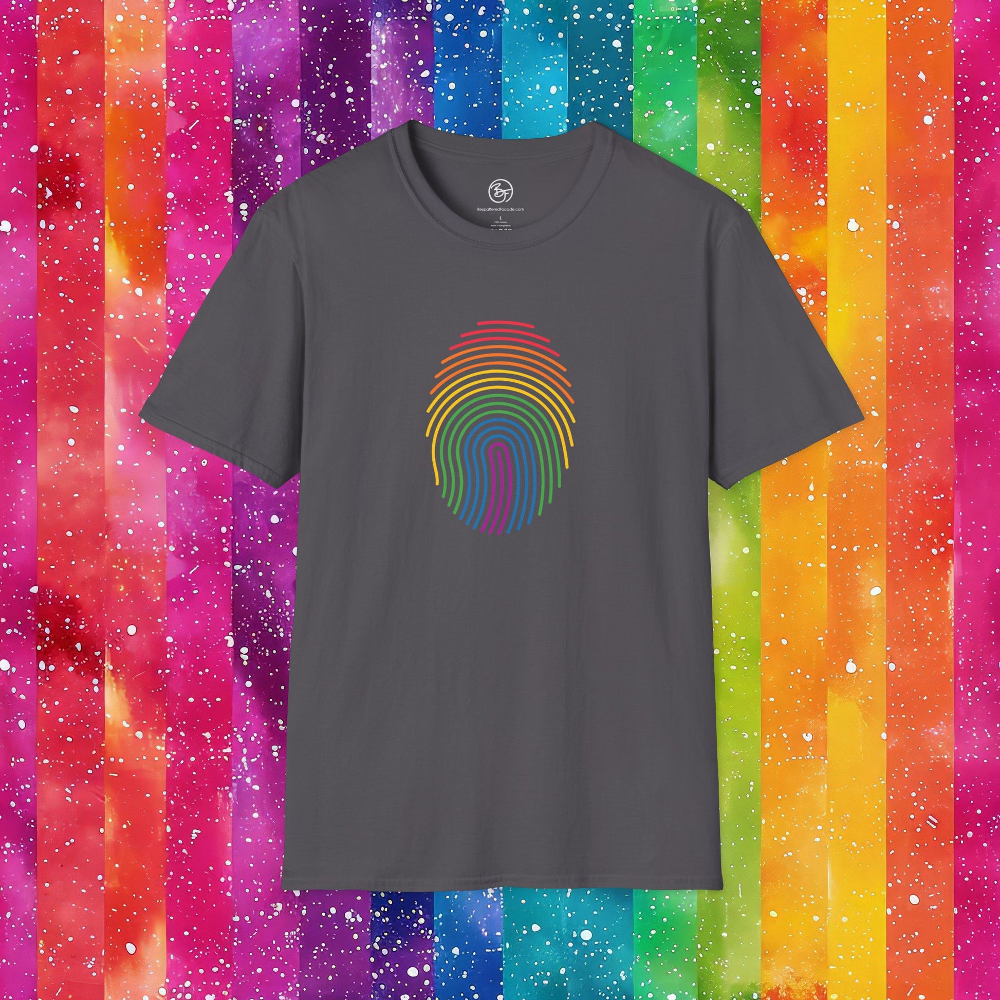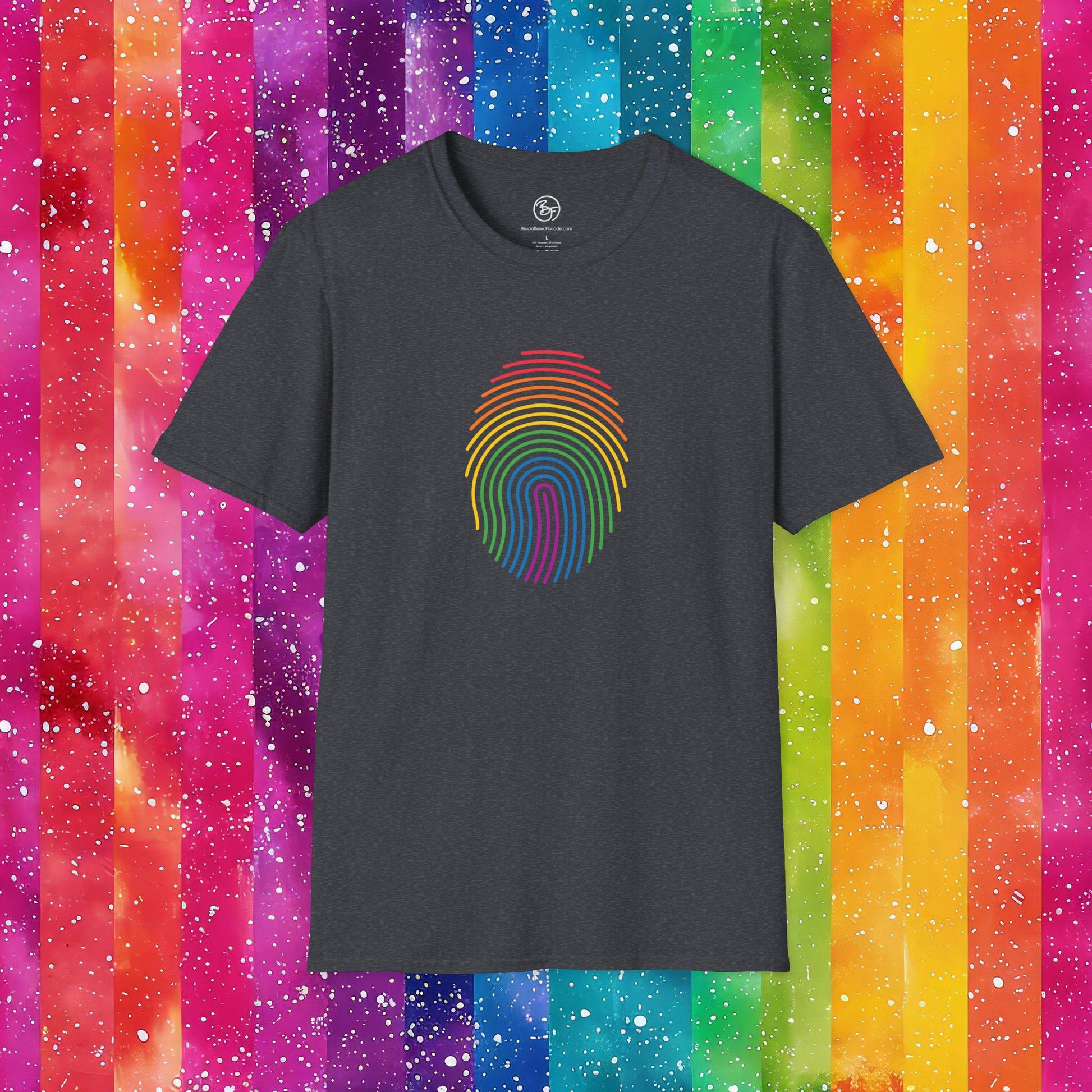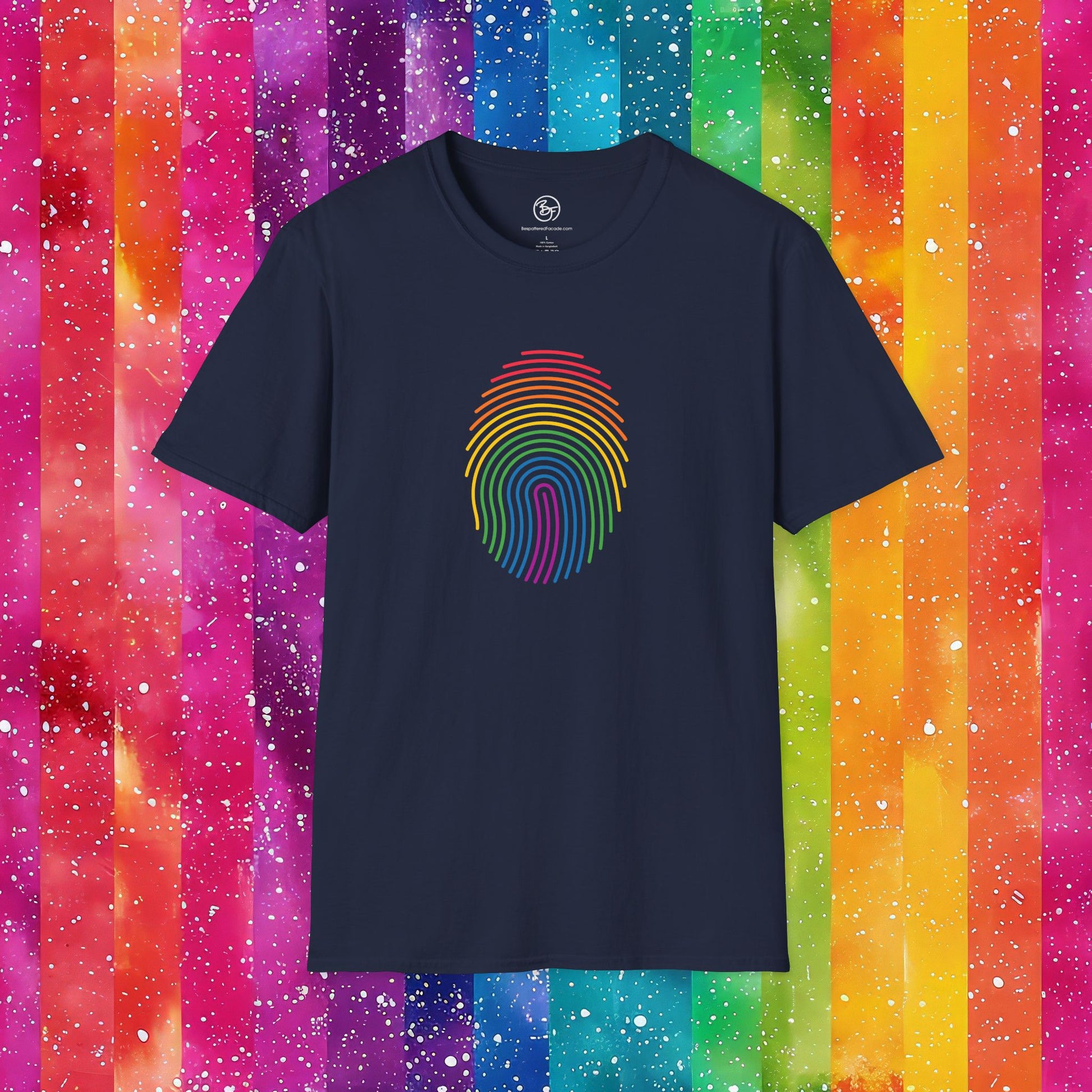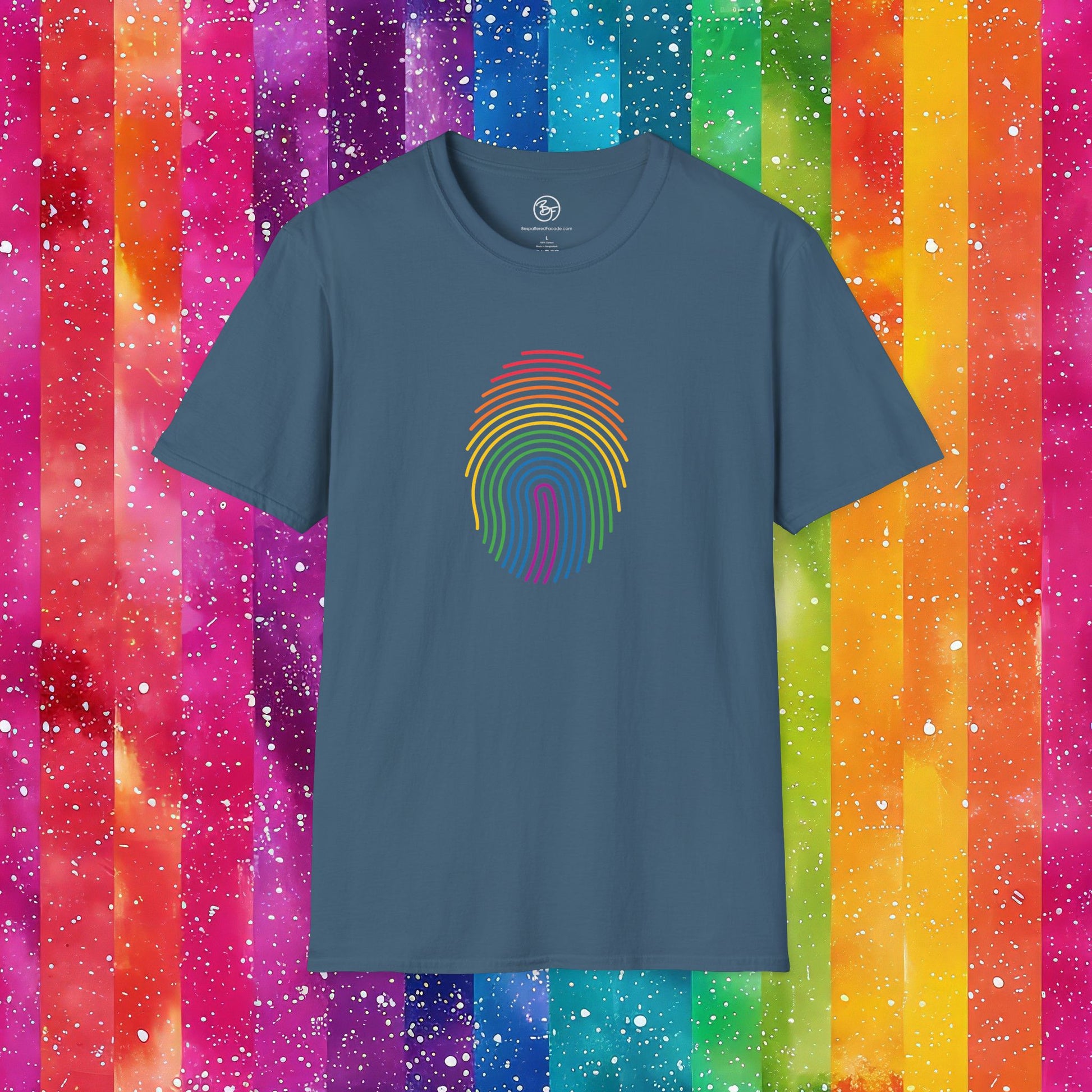 Bespattered Facade Rainbow Fingerprint Unisex Softstyle T-Shirt
