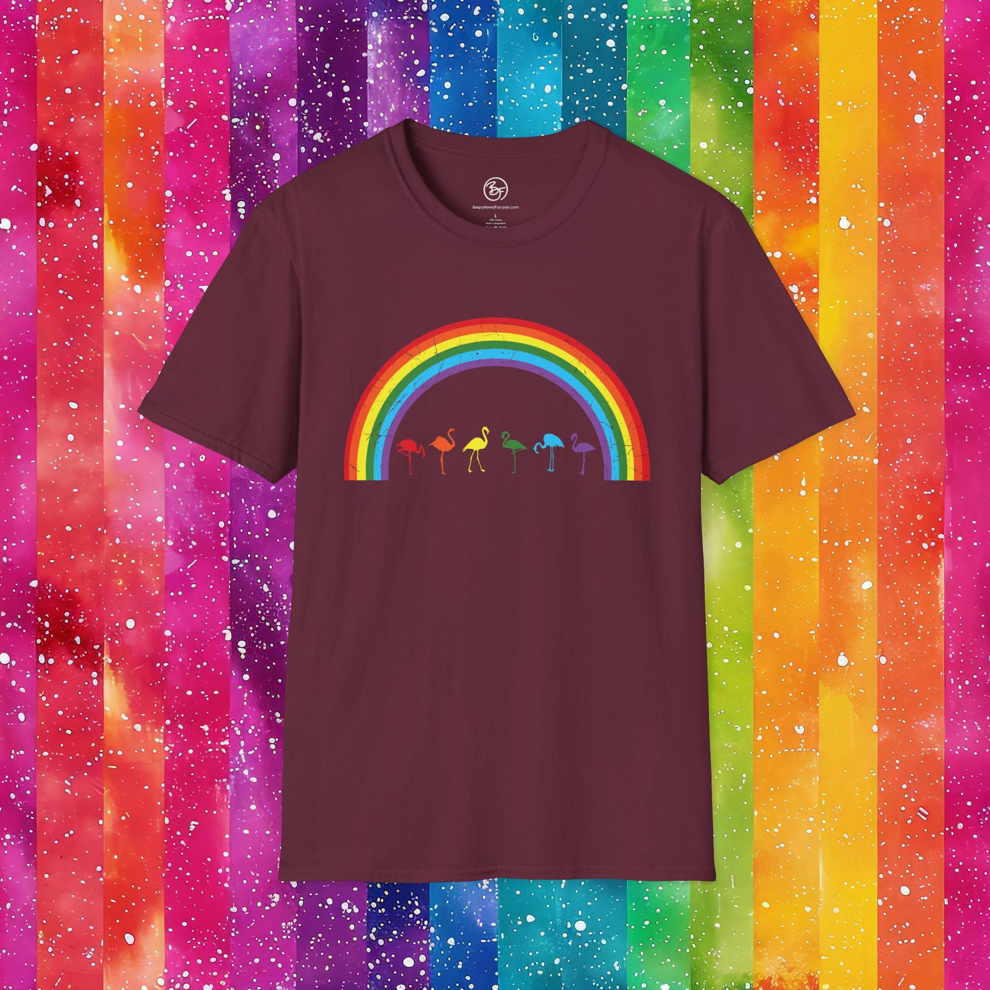 Bespattered Facade Rainbow Flamingos Unisex Softstyle T-Shirt