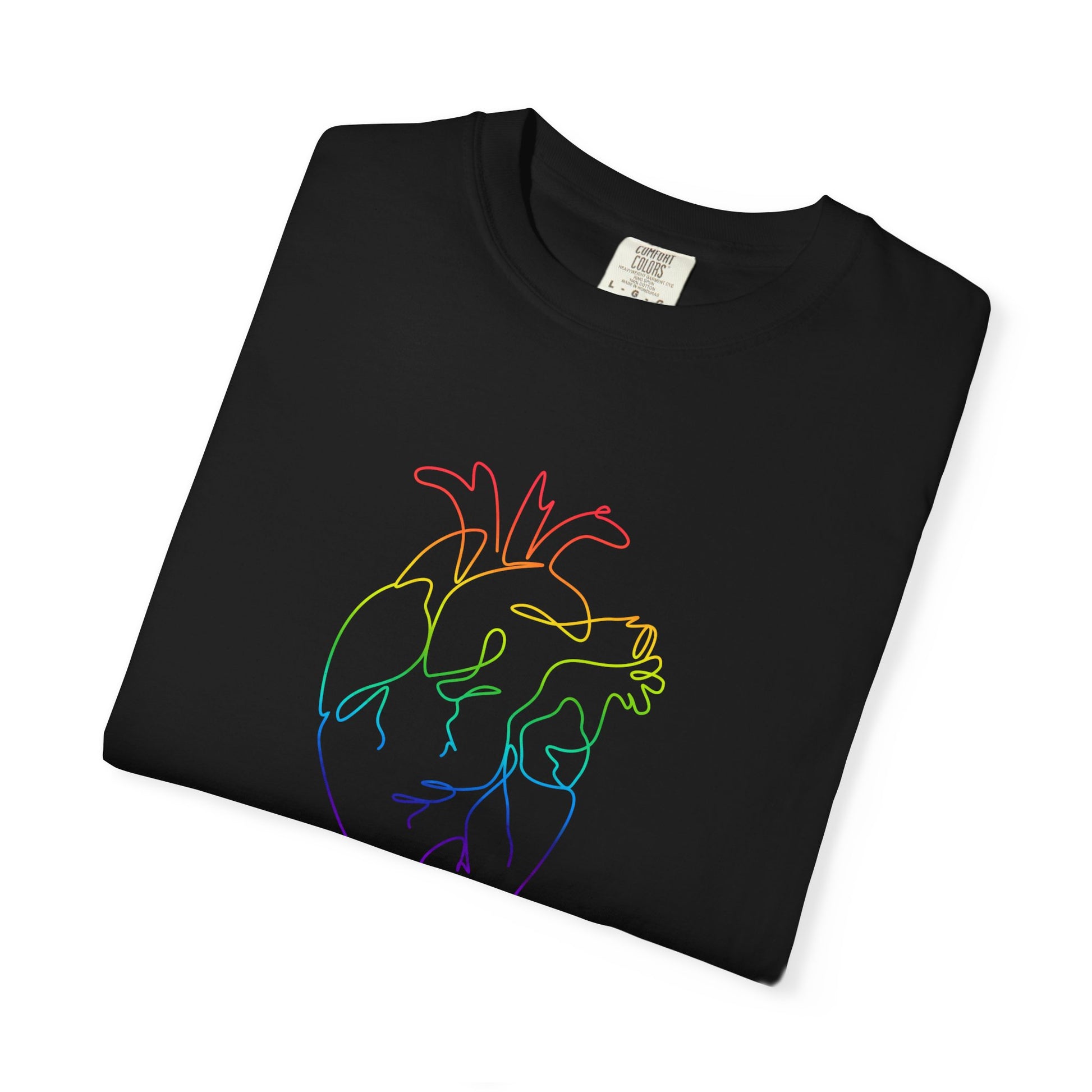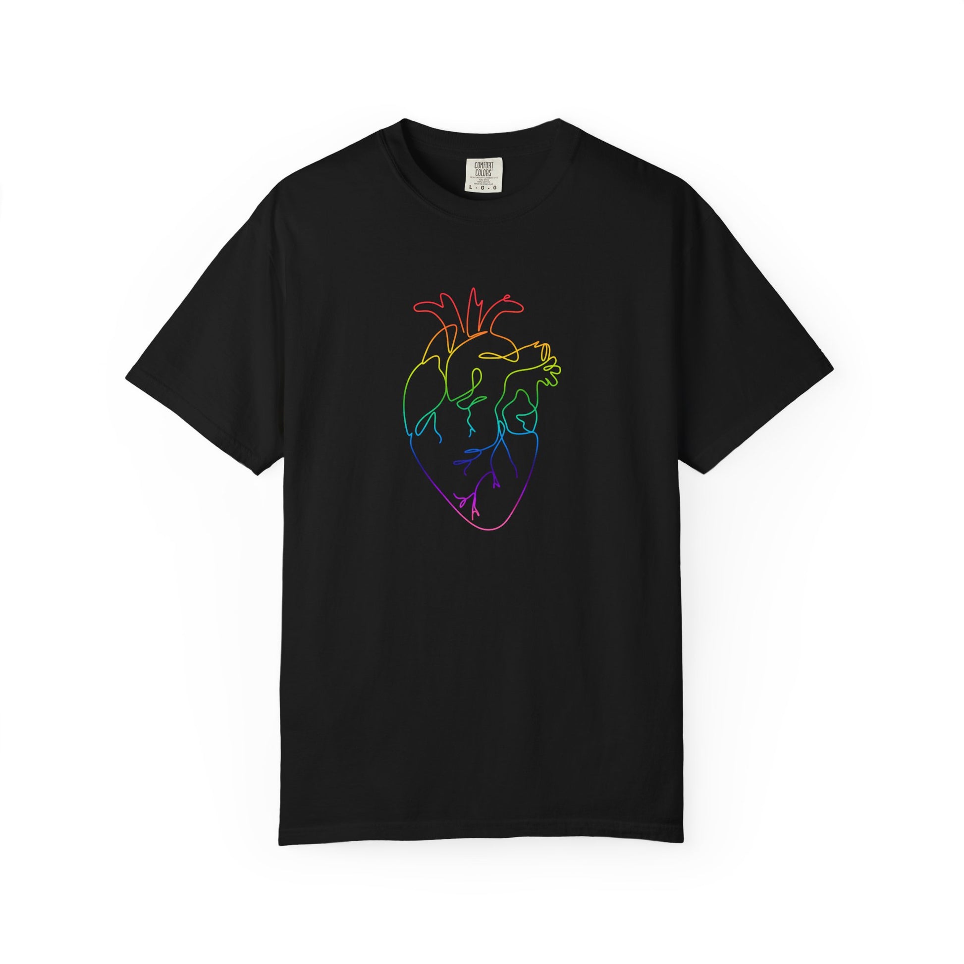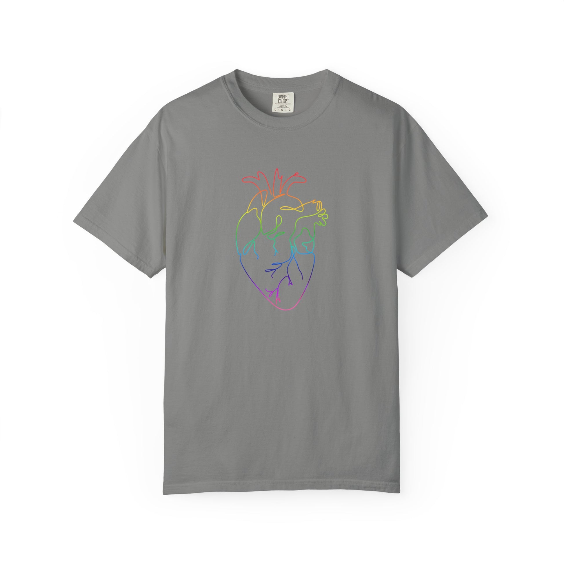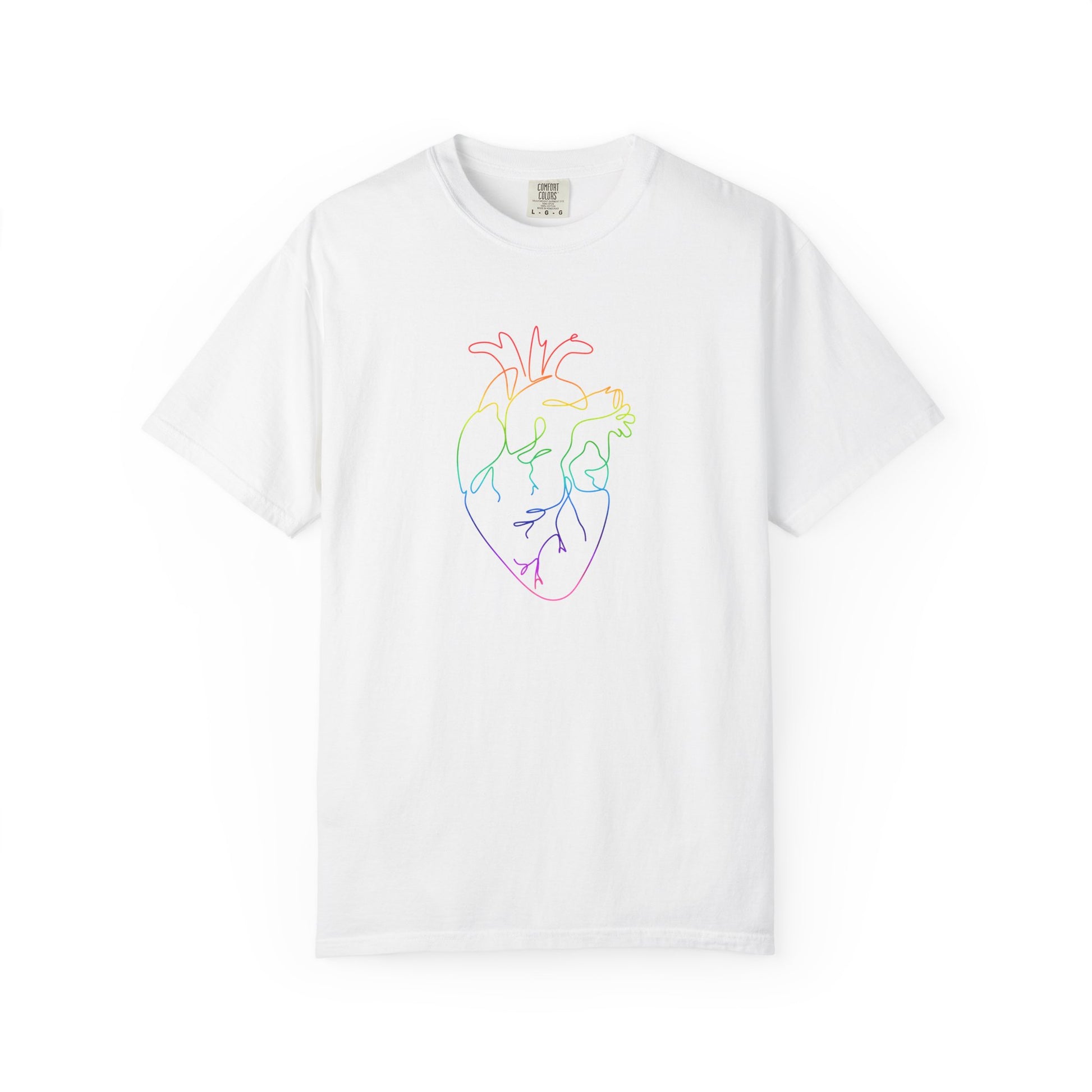 Bespattered Facade Rainbow Heart Line Art Premium Unisex Comfort Colors Garment Dyed 100% Cotton T-Shirt
