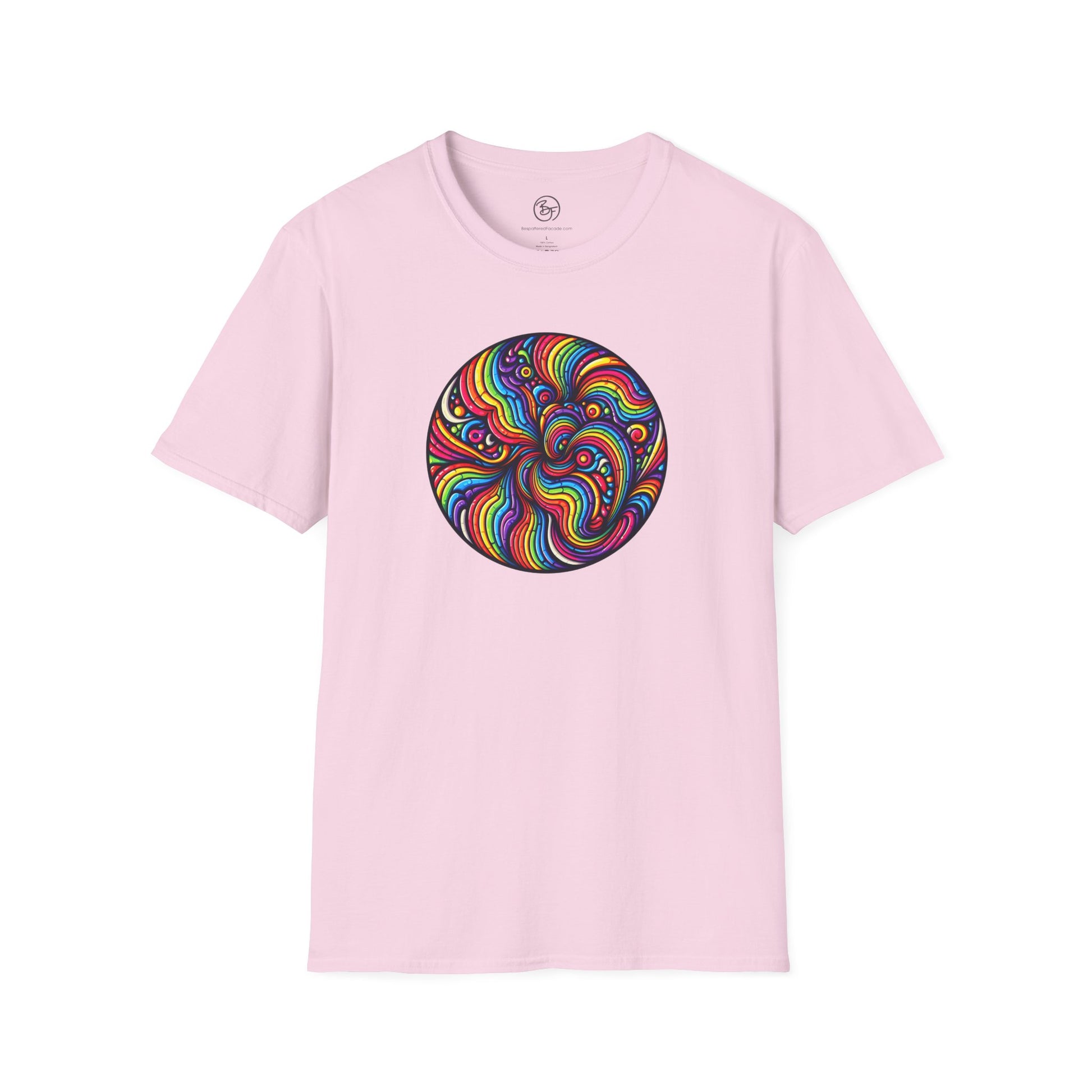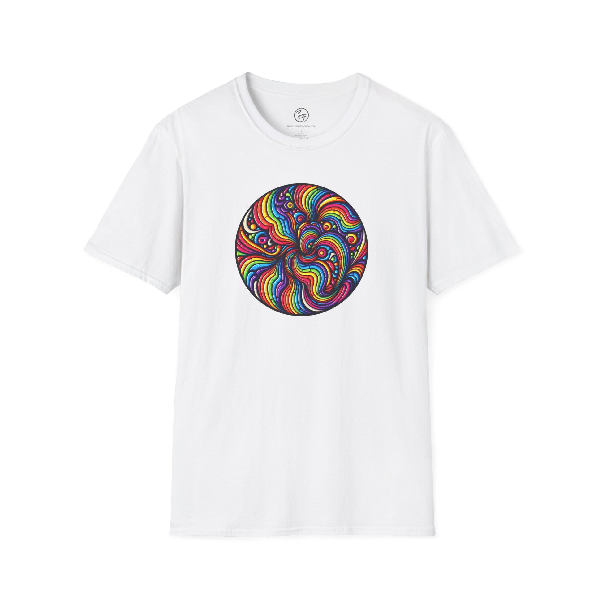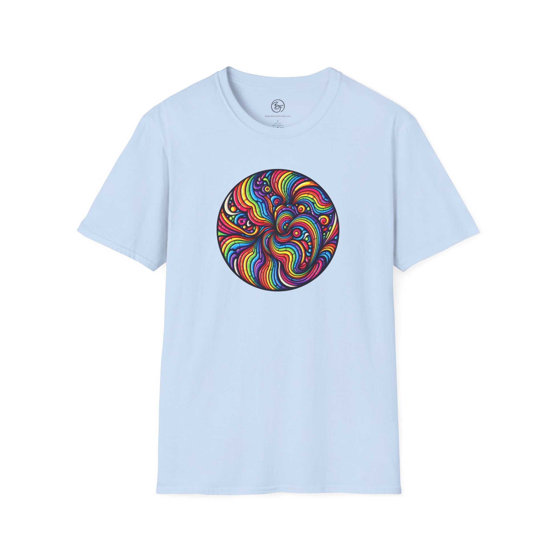 What could be better than a rainbow swirl right in the middle of your chest? You'll be a rainbow superhero! Made from very soft materials, this tee is 100% cotton for solid colors. Heather colors and sports grey include polyester. The shoulders have twill tape for improved durability. There are no side seams. The collar is made with ribbed knitting to prevent curling damage.