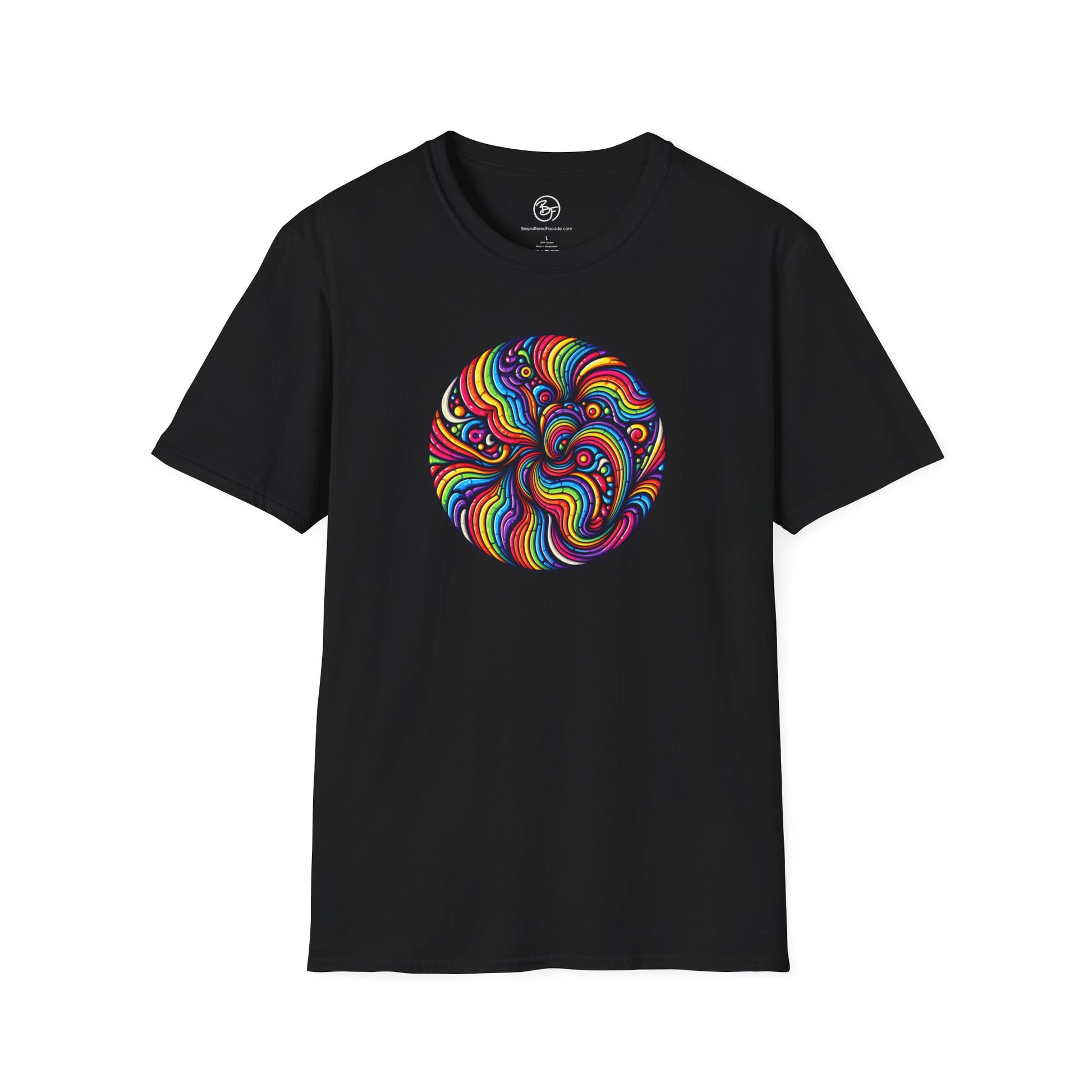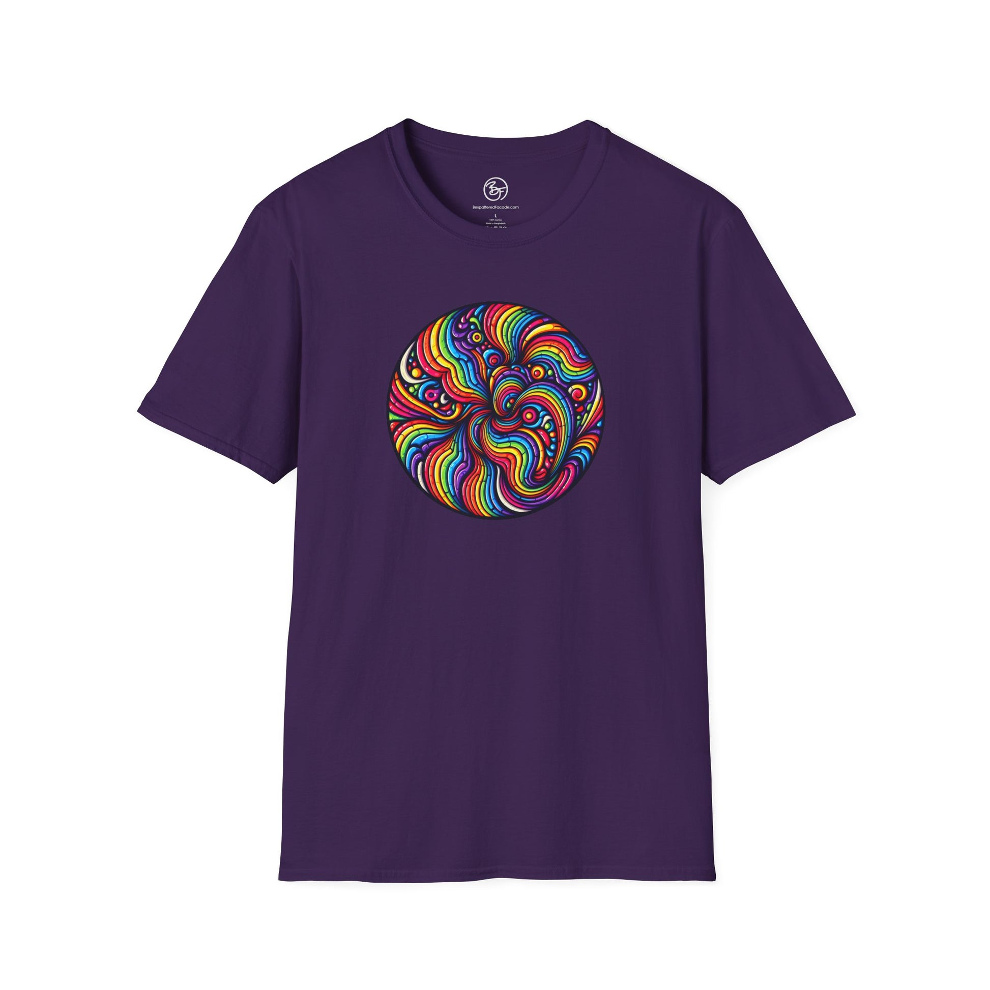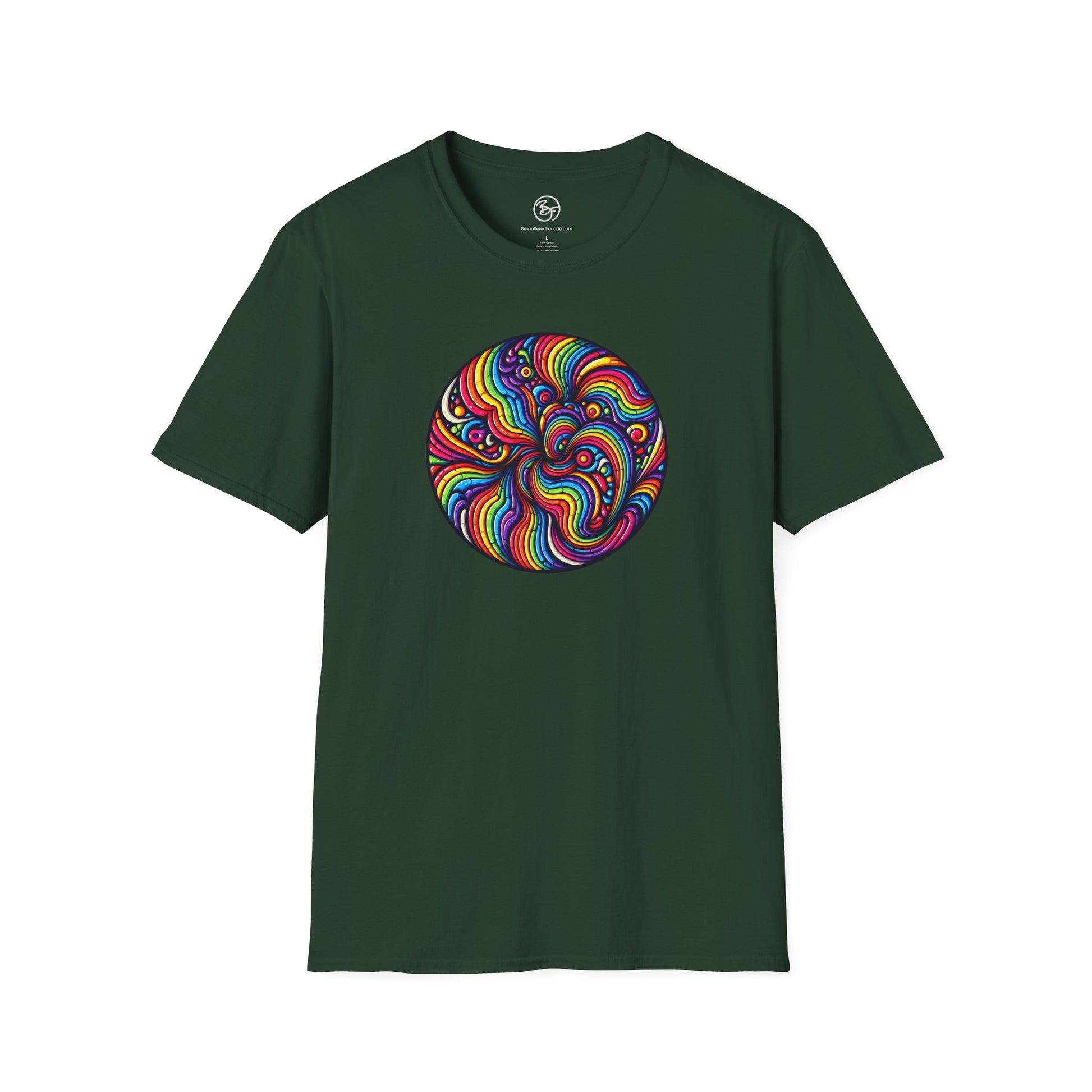 What could be better than a rainbow swirl right in the middle of your chest? You'll be a rainbow superhero! Made from very soft materials, this tee is 100% cotton for solid colors. Heather colors and sports grey include polyester. The shoulders have twill tape for improved durability. There are no side seams. The collar is made with ribbed knitting to prevent curling damage.