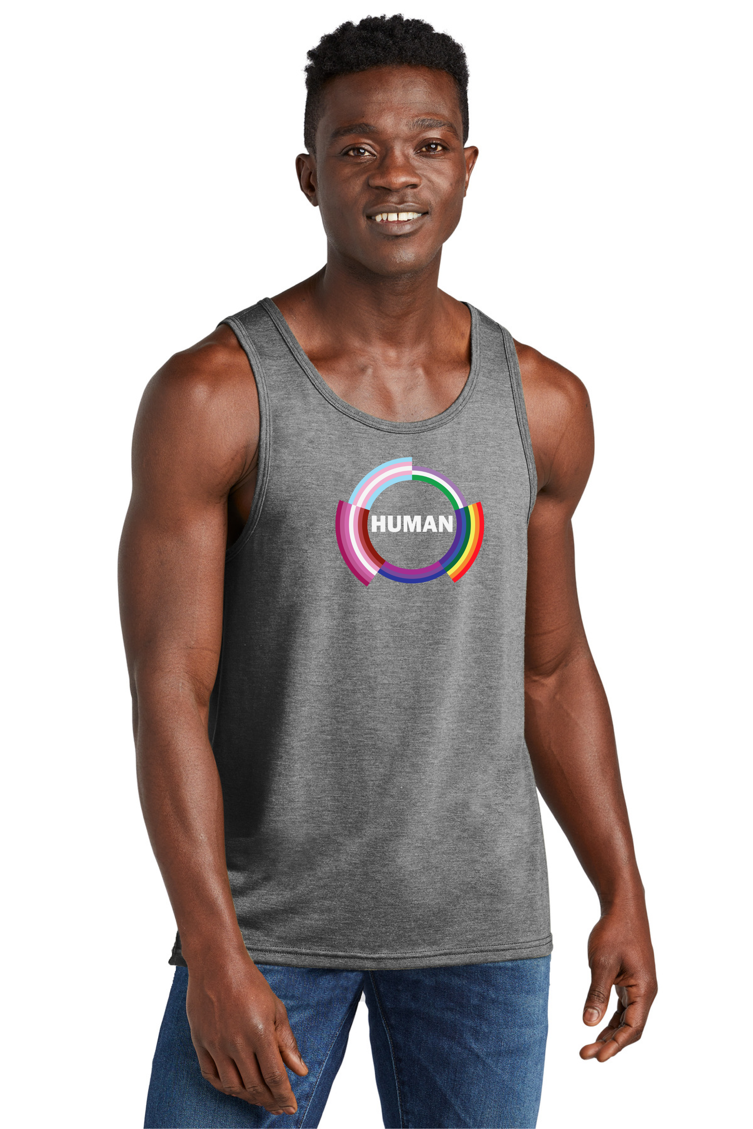 Our unisex tank from Allmade (Aluminum Grey) is also a tri-blend material and is made from recycled polyester, organic cotton and model.