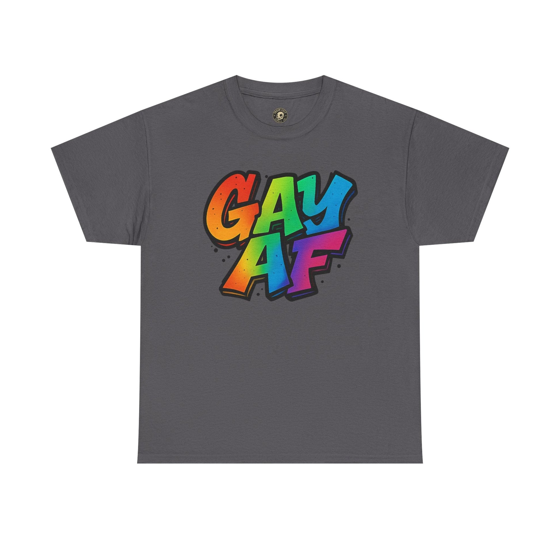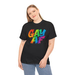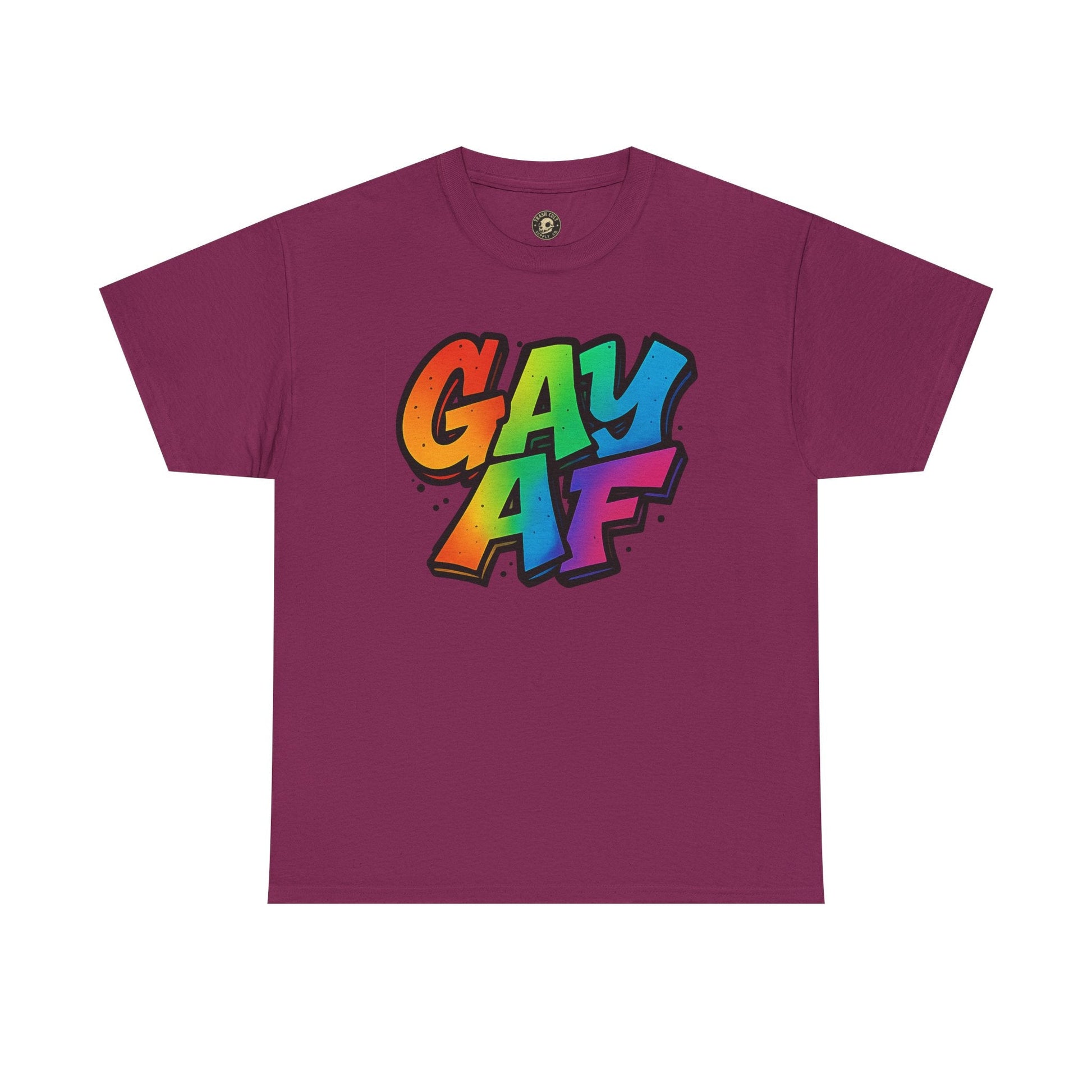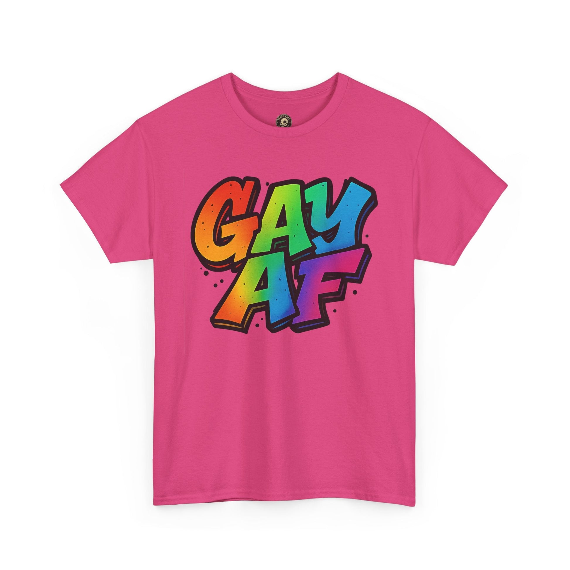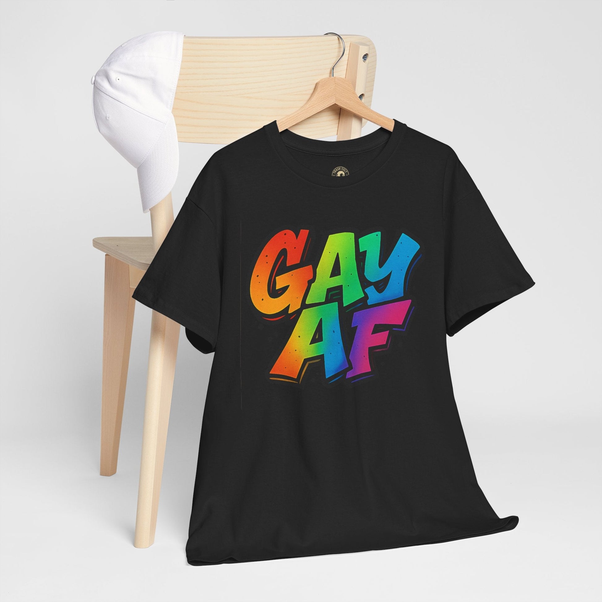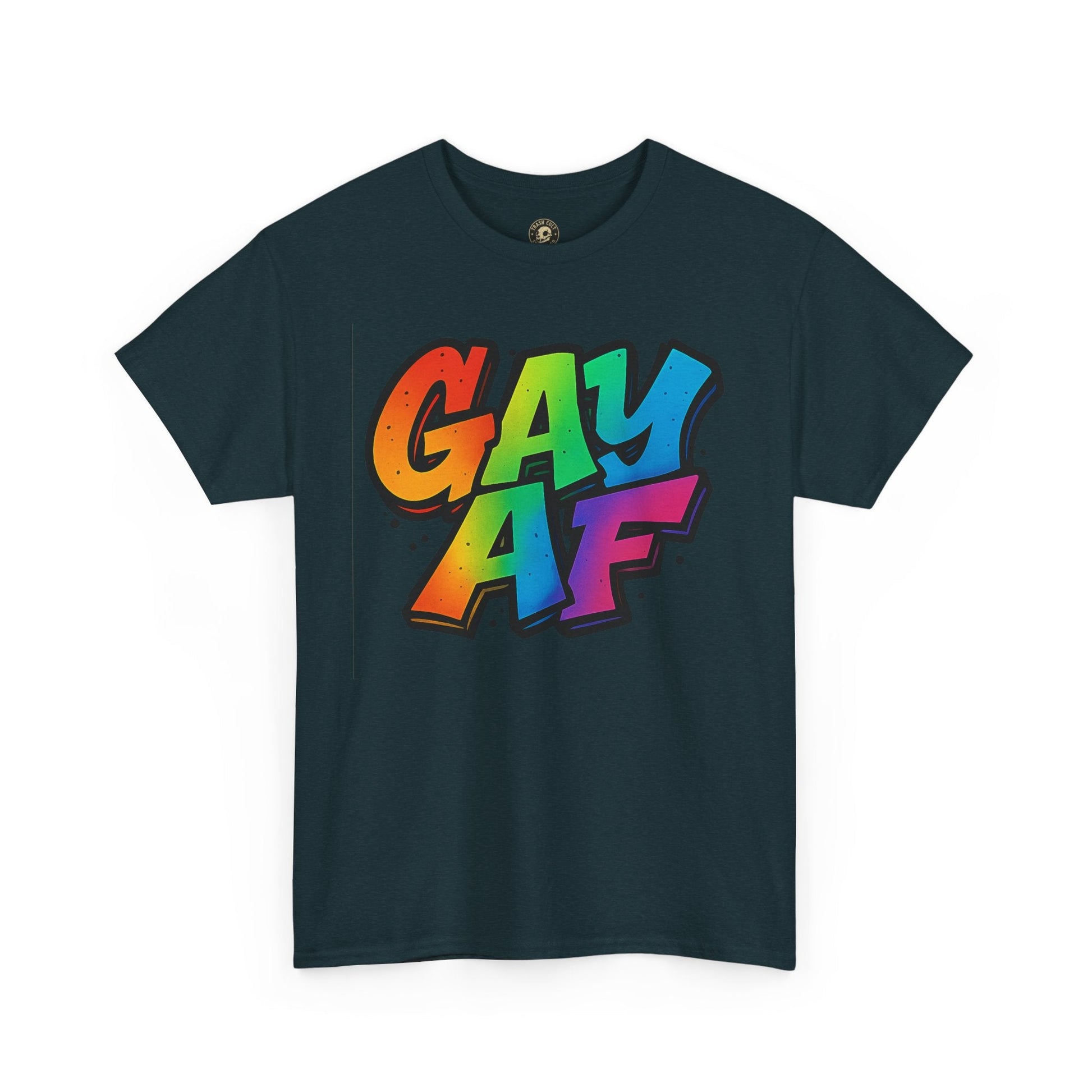 Celebrate your individuality with this vibrant unisex heavy cotton tee, perfect for making a statement. The bold 'GAY AF' design radiates confidence and pride, making it an ideal addition to any casual outfit. Comfortable and durable, this tee is perfect for everyday wear, whether you're heading to a pride event, a casual gathering, or simply lounging at home. Made from high-quality cotton, it’s designed for all-day comfort and is suitable for adults of all styles. This tee is a great gift for Pride Month, birthdays, or any celebration of love and diversity, adding a pop of color and joy to your wardrobe.