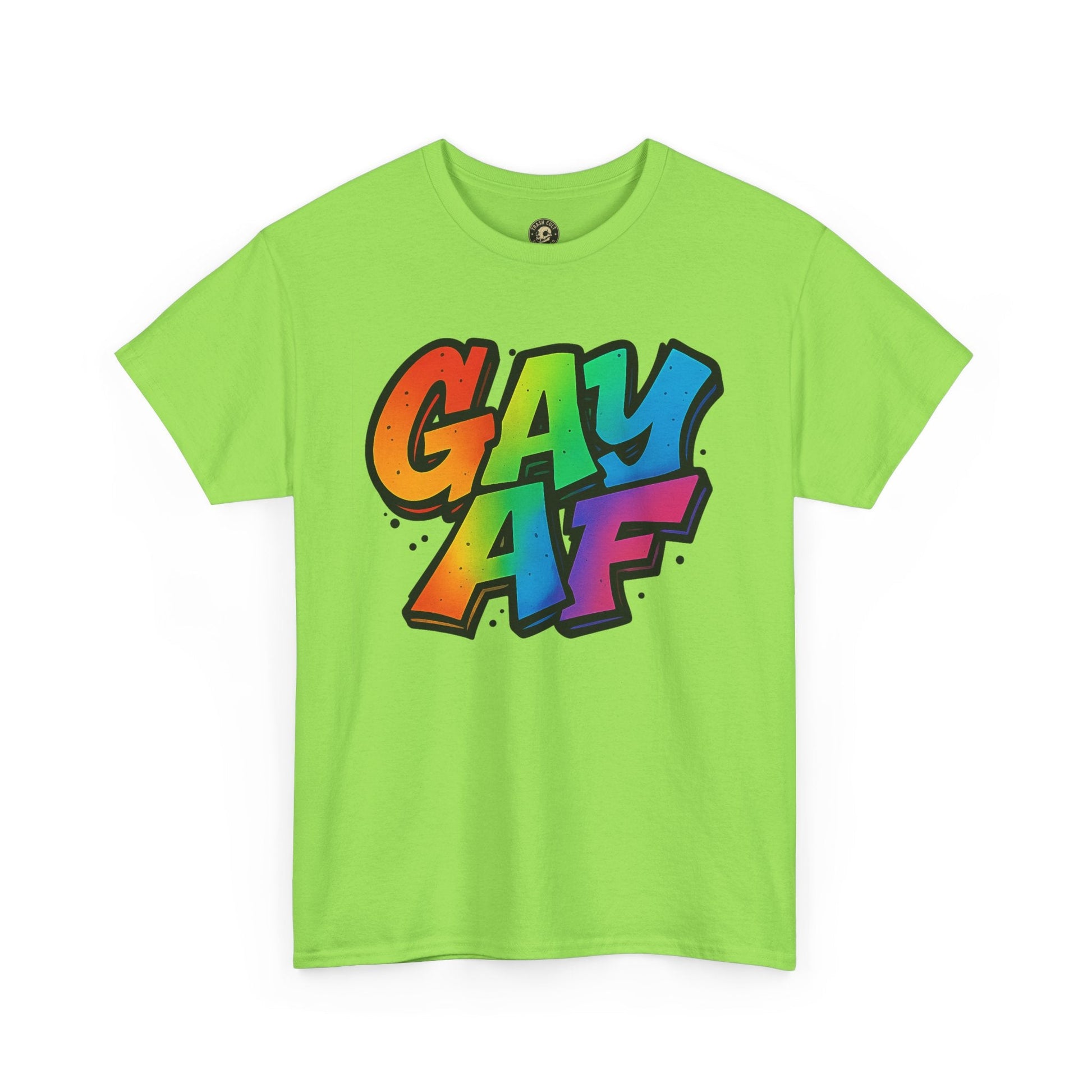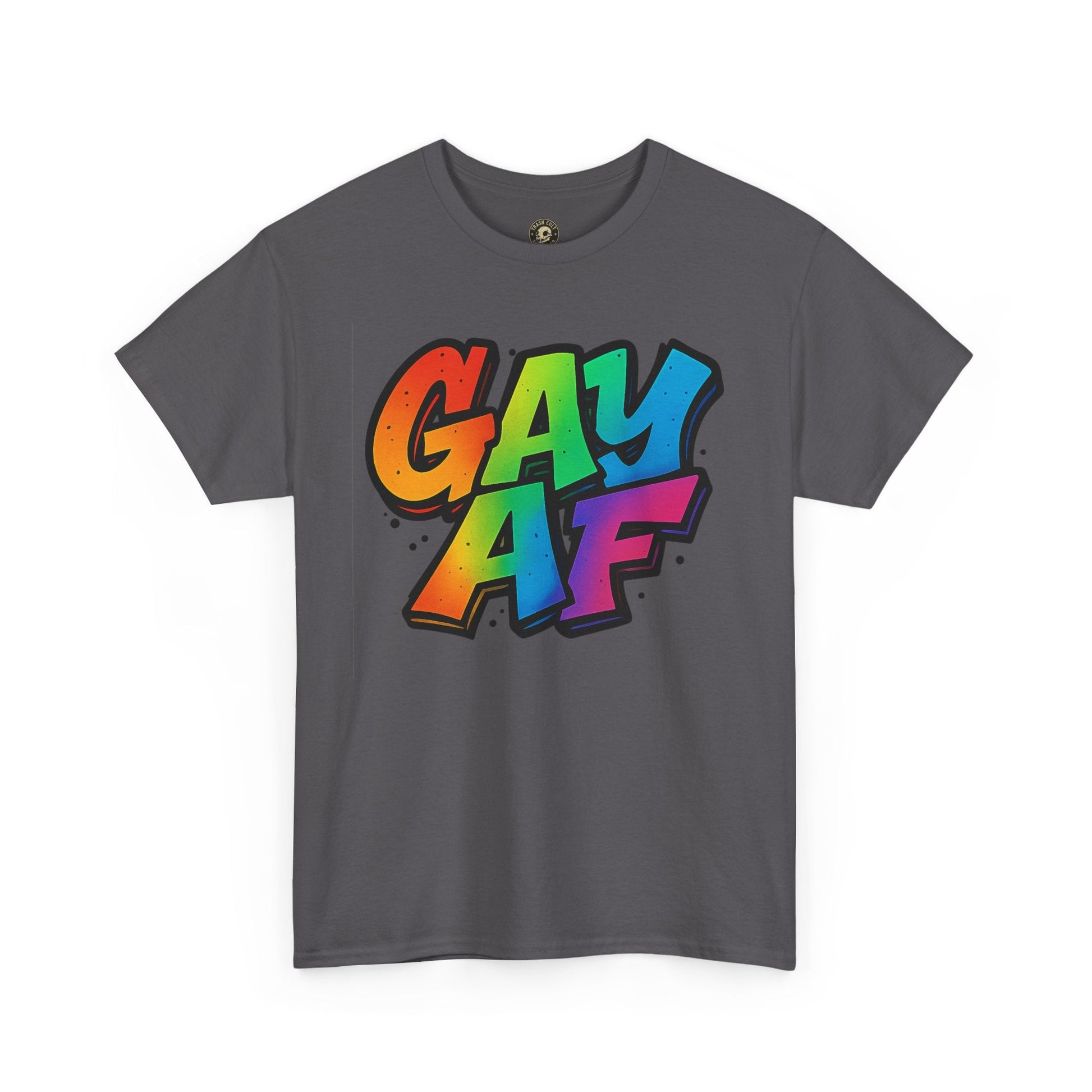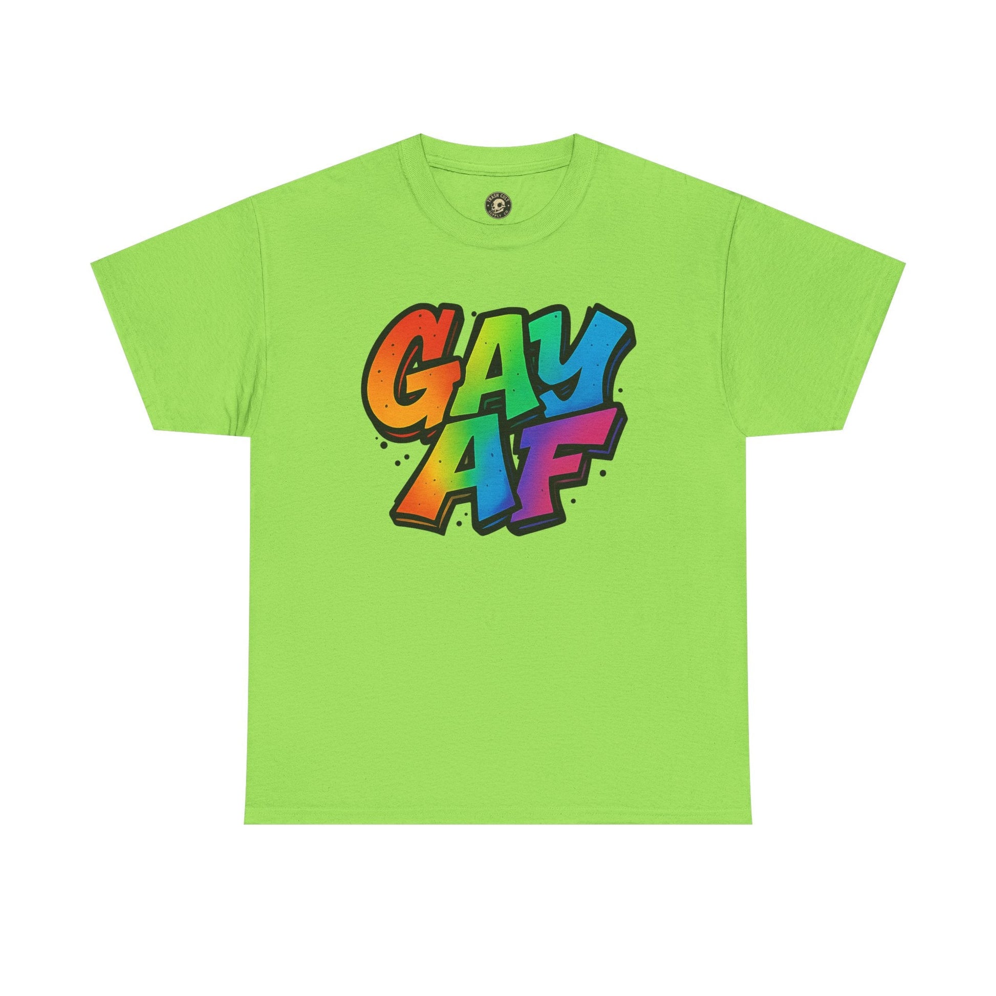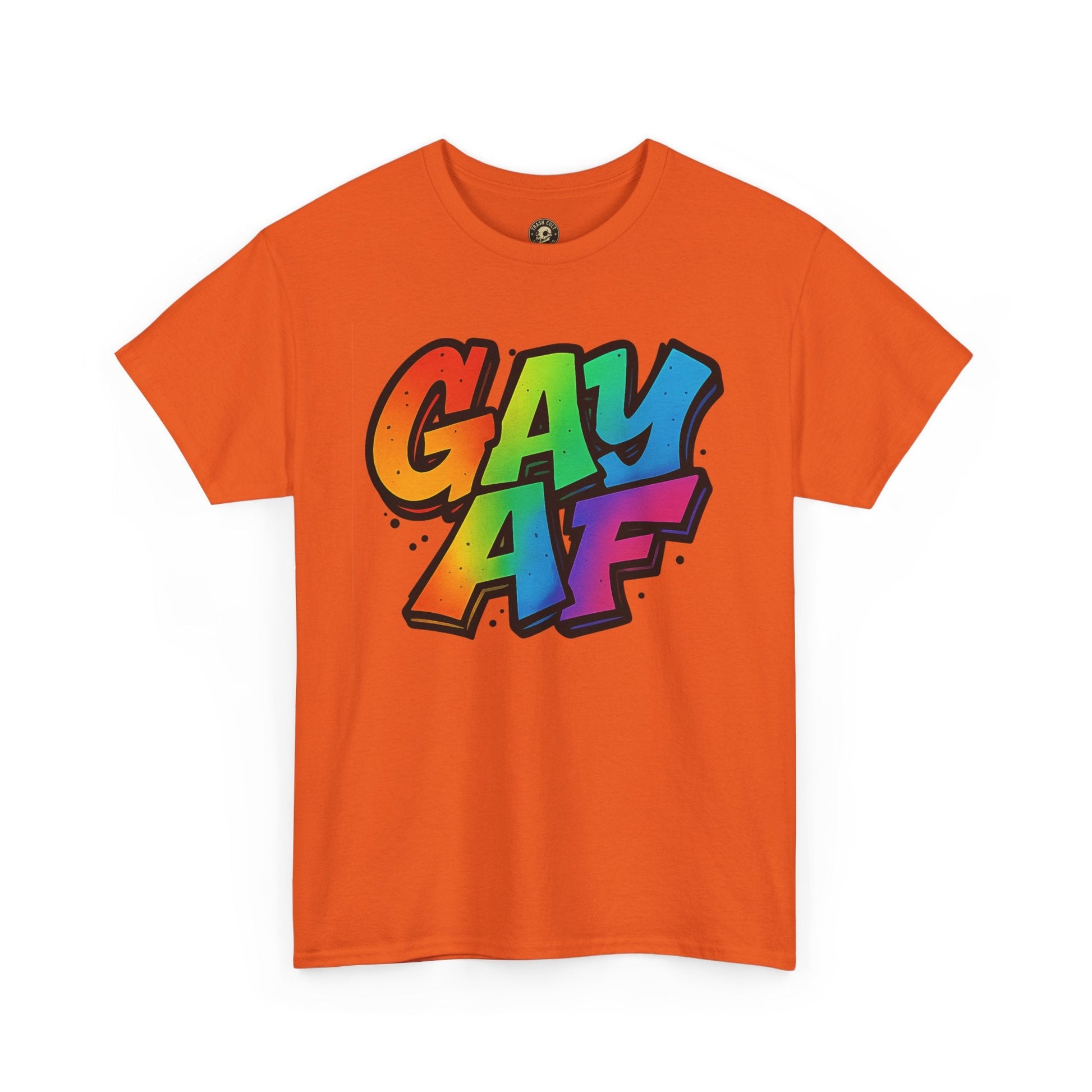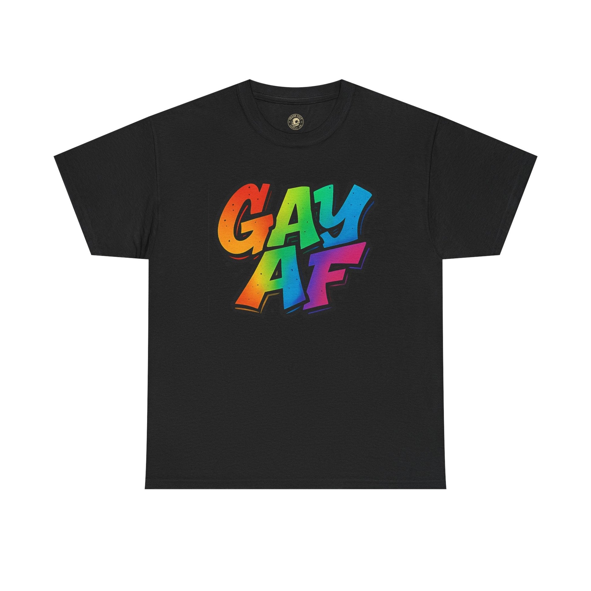 Celebrate your individuality with this vibrant unisex heavy cotton tee, perfect for making a statement. The bold 'GAY AF' design radiates confidence and pride, making it an ideal addition to any casual outfit. Comfortable and durable, this tee is perfect for everyday wear, whether you're heading to a pride event, a casual gathering, or simply lounging at home. Made from high-quality cotton, it’s designed for all-day comfort and is suitable for adults of all styles. This tee is a great gift for Pride Month, birthdays, or any celebration of love and diversity, adding a pop of color and joy to your wardrobe.