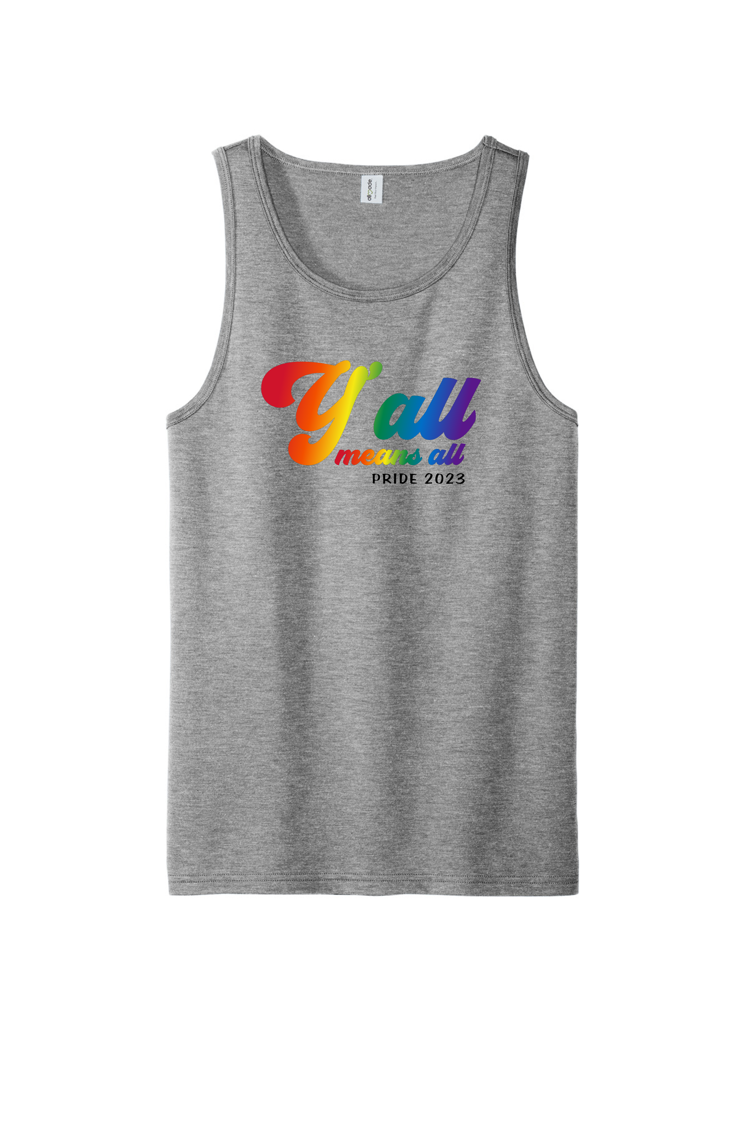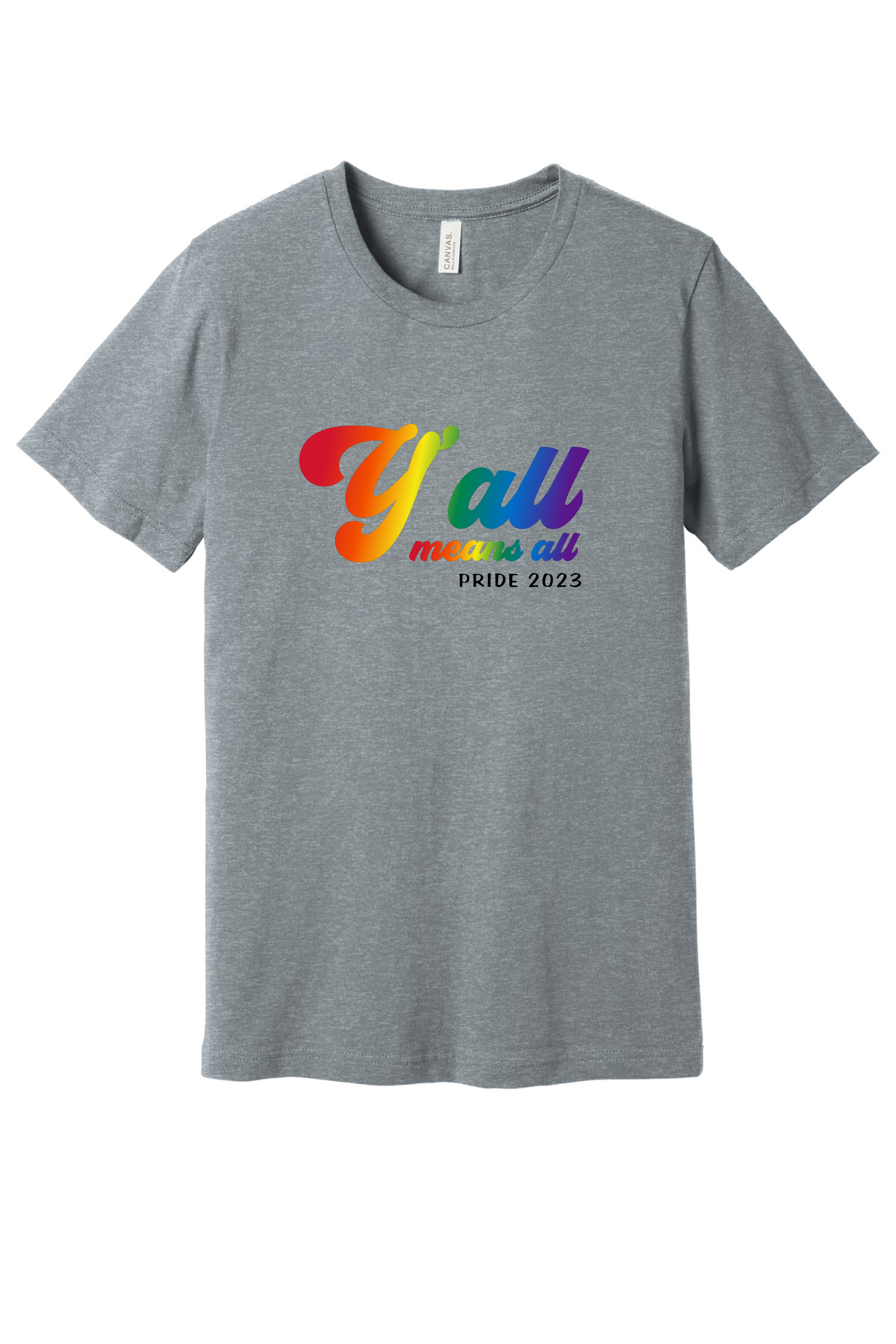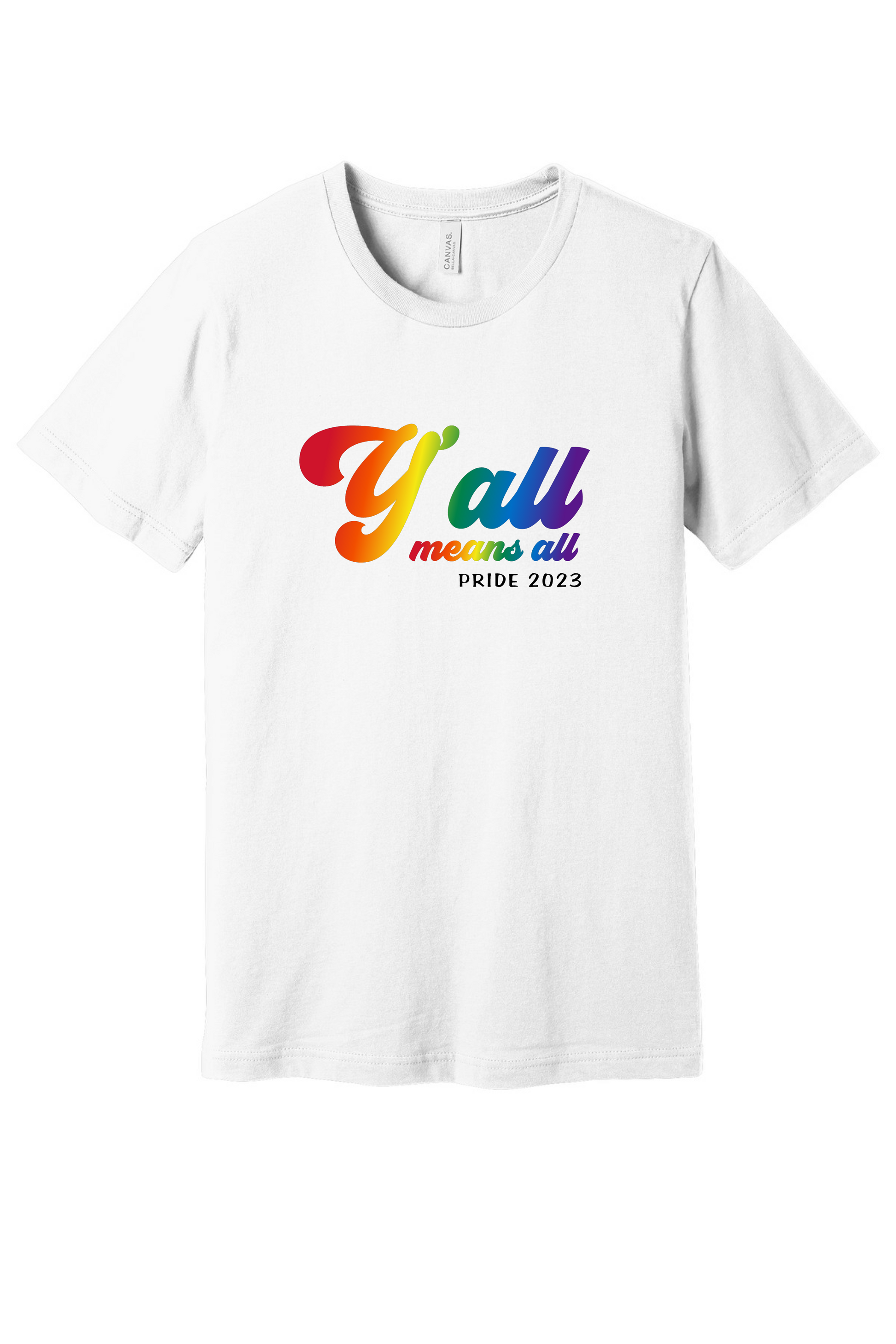 "Y'all means all Pride 2023" is available in a variety of tanks and tees.