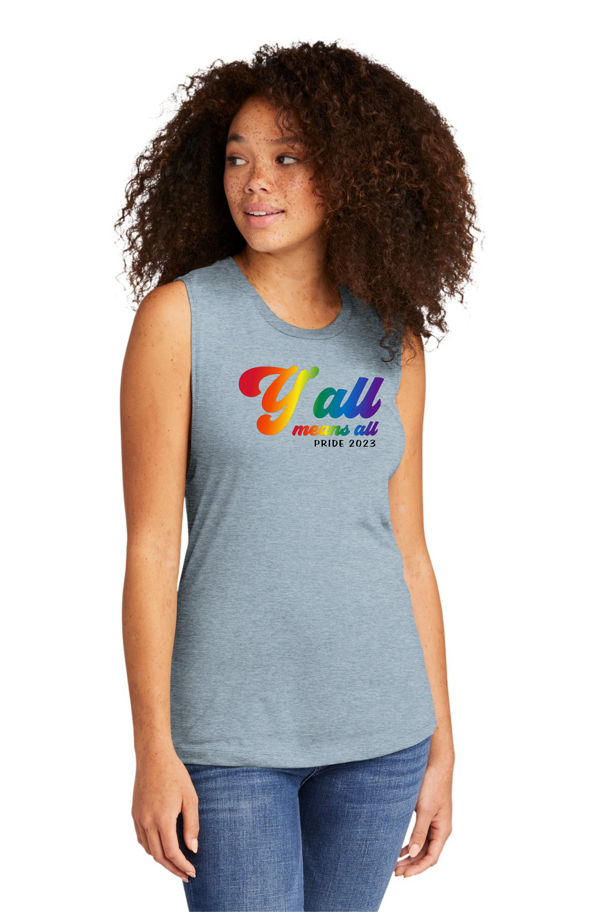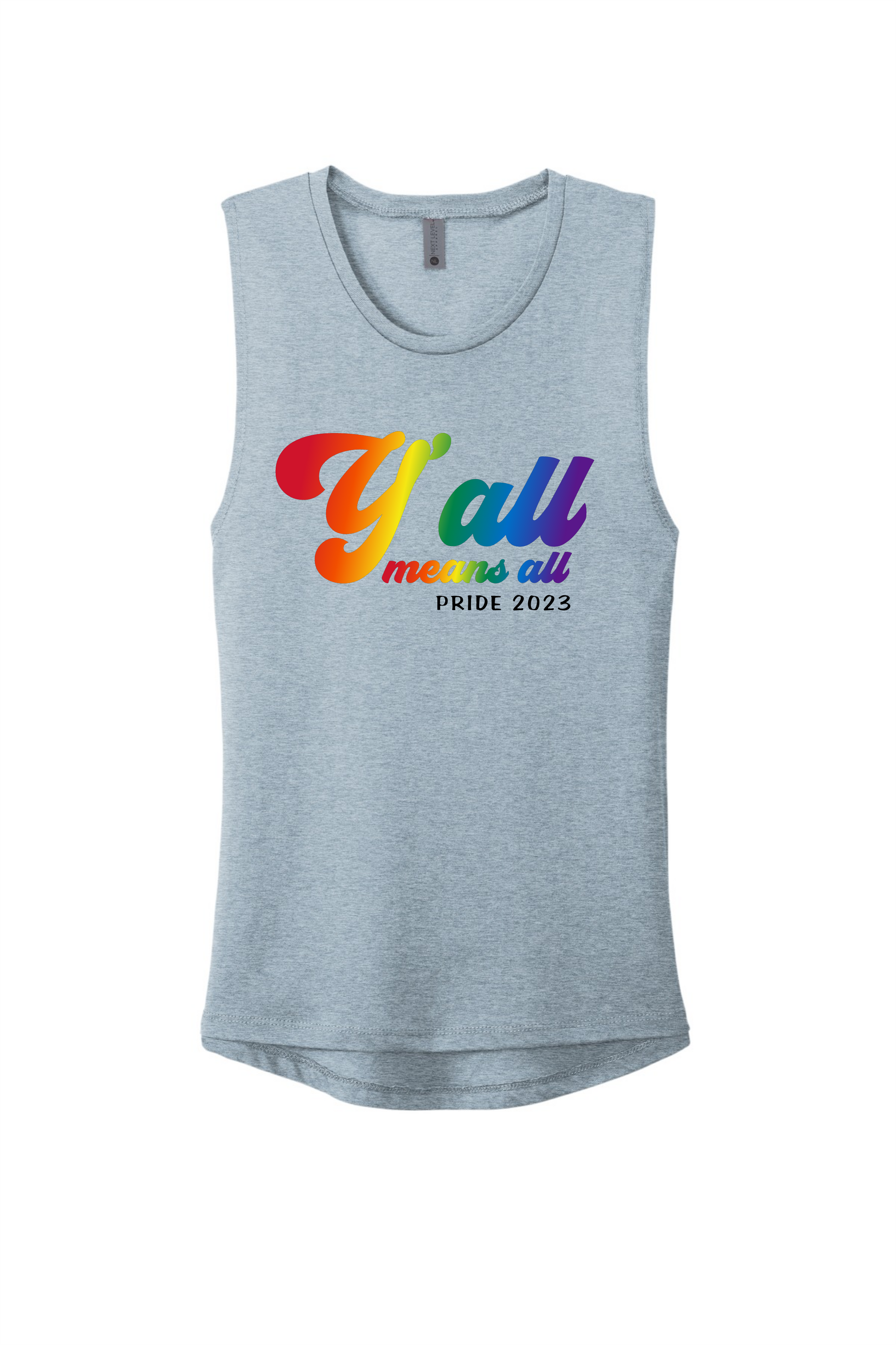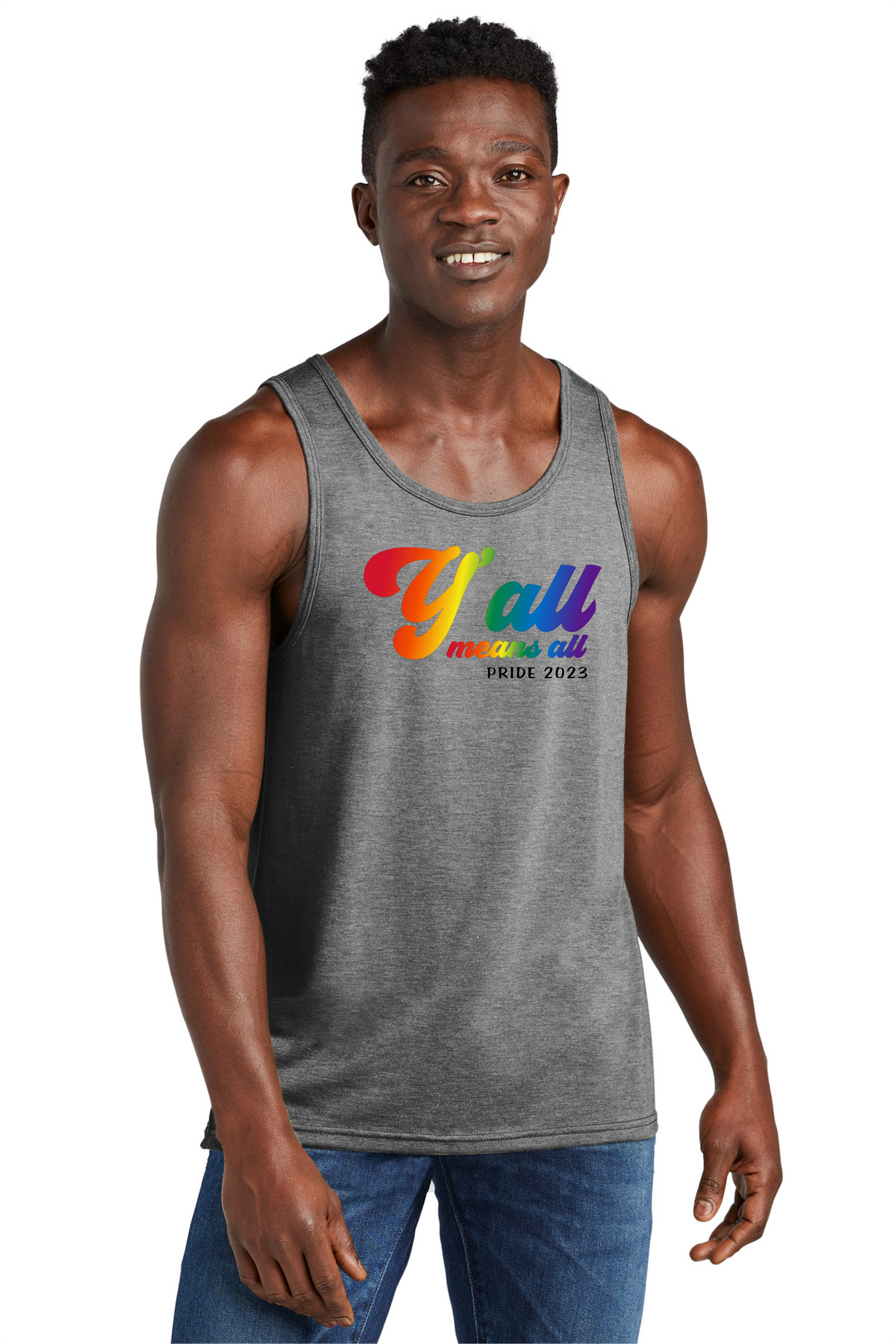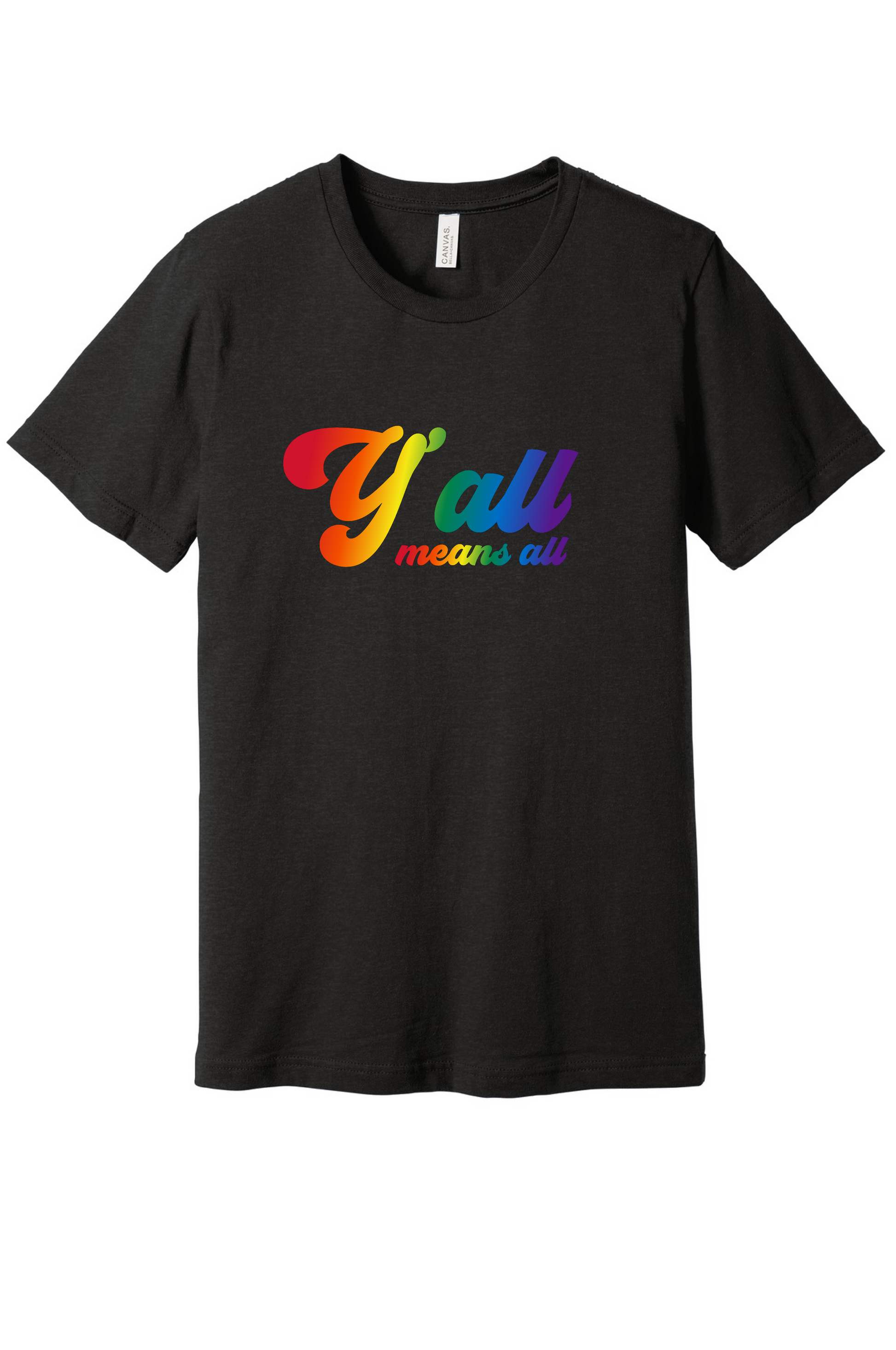 "Y'all means all Pride 2023" is available in a variety of tanks and tees.