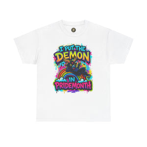 Pride Month Unisex Tee - I Put the Demon in Pride Month, LGBTQ+ Apparel, Rainbow Shirt, Festival Wear, Gift for Allies & Activists