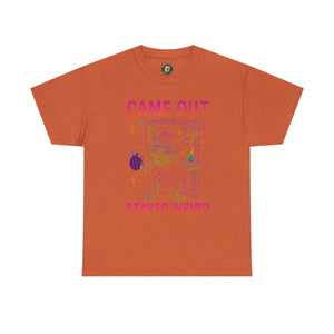 Came Out, Stayed Weird – Neon Gremlin Pride T-Shirt | Gildan Unisex Heavy Cotton Tee | LGBTQ+ Graphic Shirt