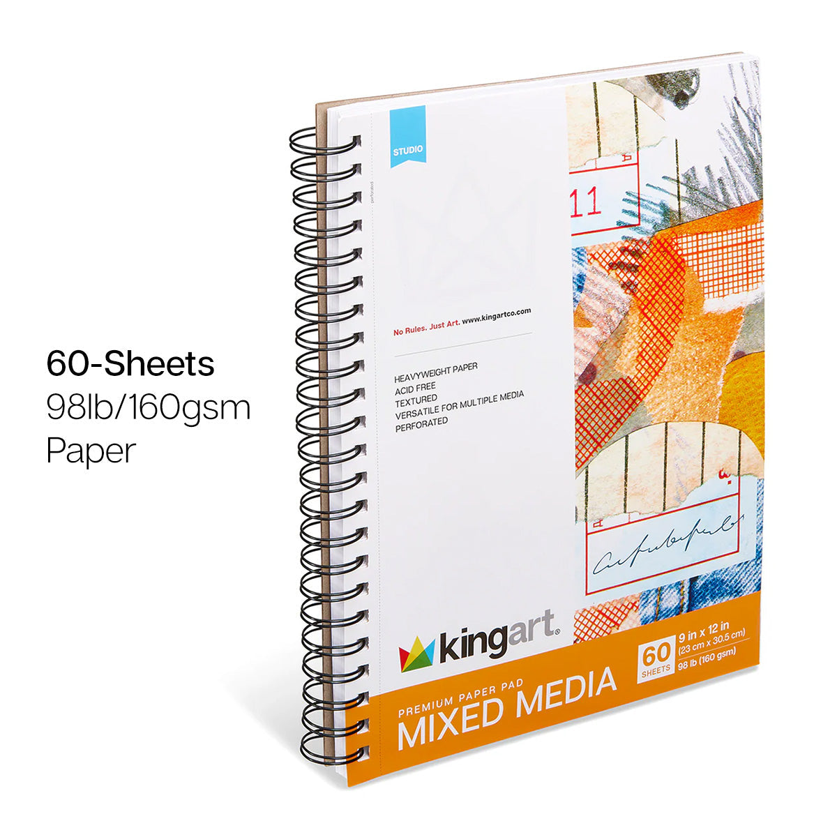 Elevate your creativity with the KINGART® Mixed Media Premium Paper Pad. Designed for versatility and performance, this 9" x 12" spiral-bound pad features 60 sheets of heavyweight, acid-free textured paper—ideal for artists who love to experiment across mediums. Whether you're working with watercolor, acrylic, ink, pencil, or collage, each page is engineered to handle it all with minimal warping or bleed-through.