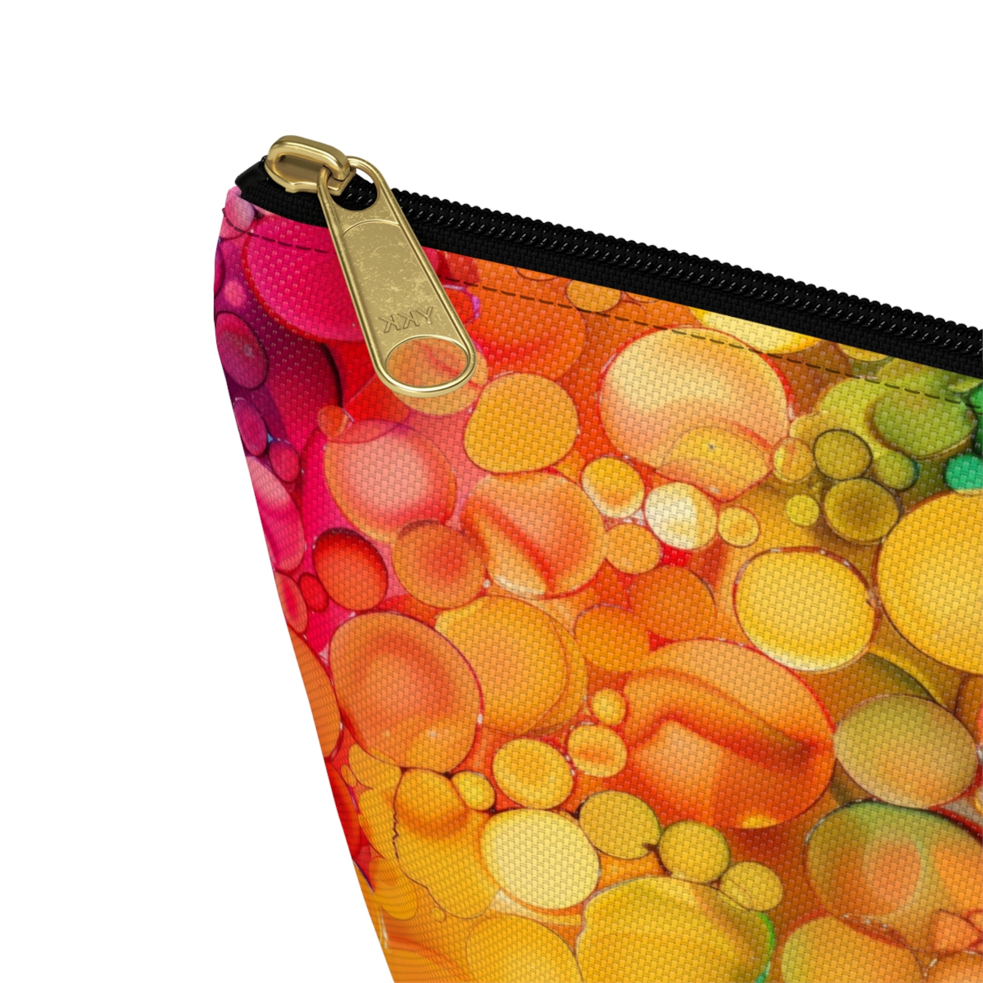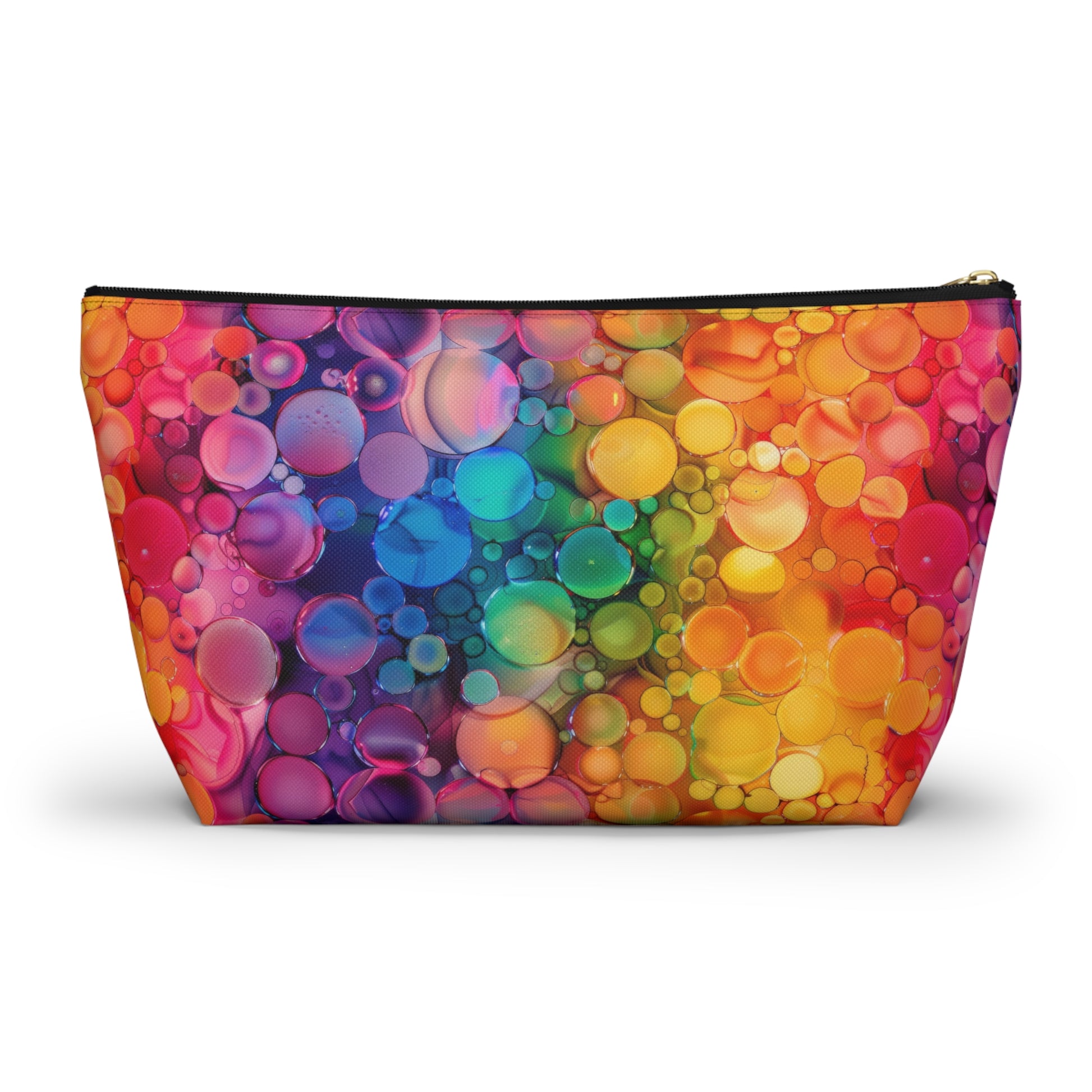 Our t-bottom pouches vary from small to large and can be used for pretty much anything. They make excellent pencil cases and cosmetic travel bags. They are constructed from a durable material with a zipper closure.