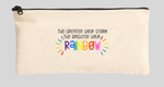 Bring a rainbow of happiness into your life with the Rainbow Storm Pouch! This cute natural canvas pouch is the perfect size to store small items, and fastened with a black zipper, your treasures will stay safe and secure. Add a splash of color to your accessories and enjoy sunshine days! ✨