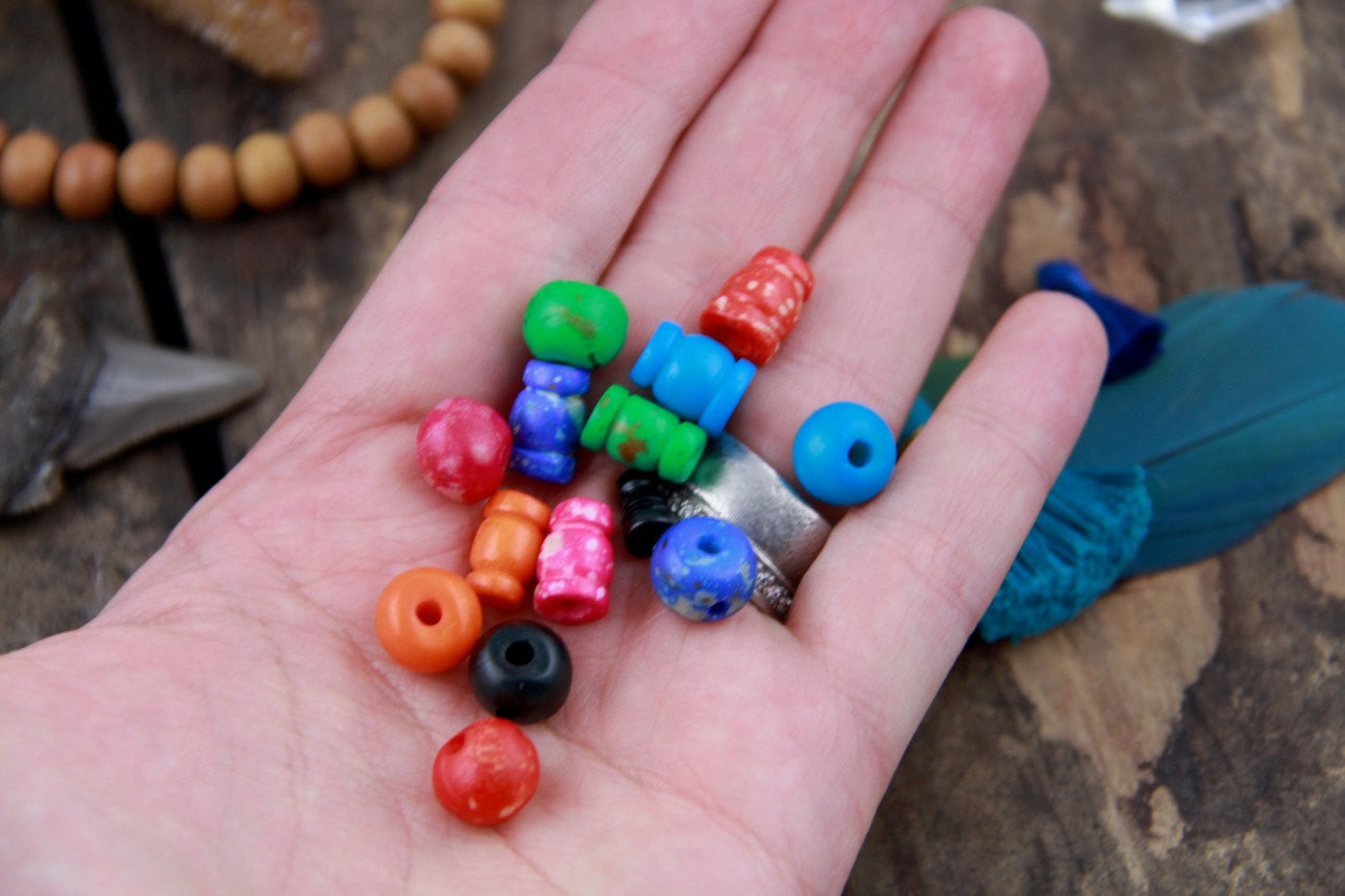 I'm so excited to finally bring you these Guru Beads, in new bold colors made to coordinate with our bone bead line! Guru beads are used as a closure on traditional Malas and yoga-style jewelry. Super natural and beautiful, these are made cow bone that has been stained various colors, with a mottled surface.