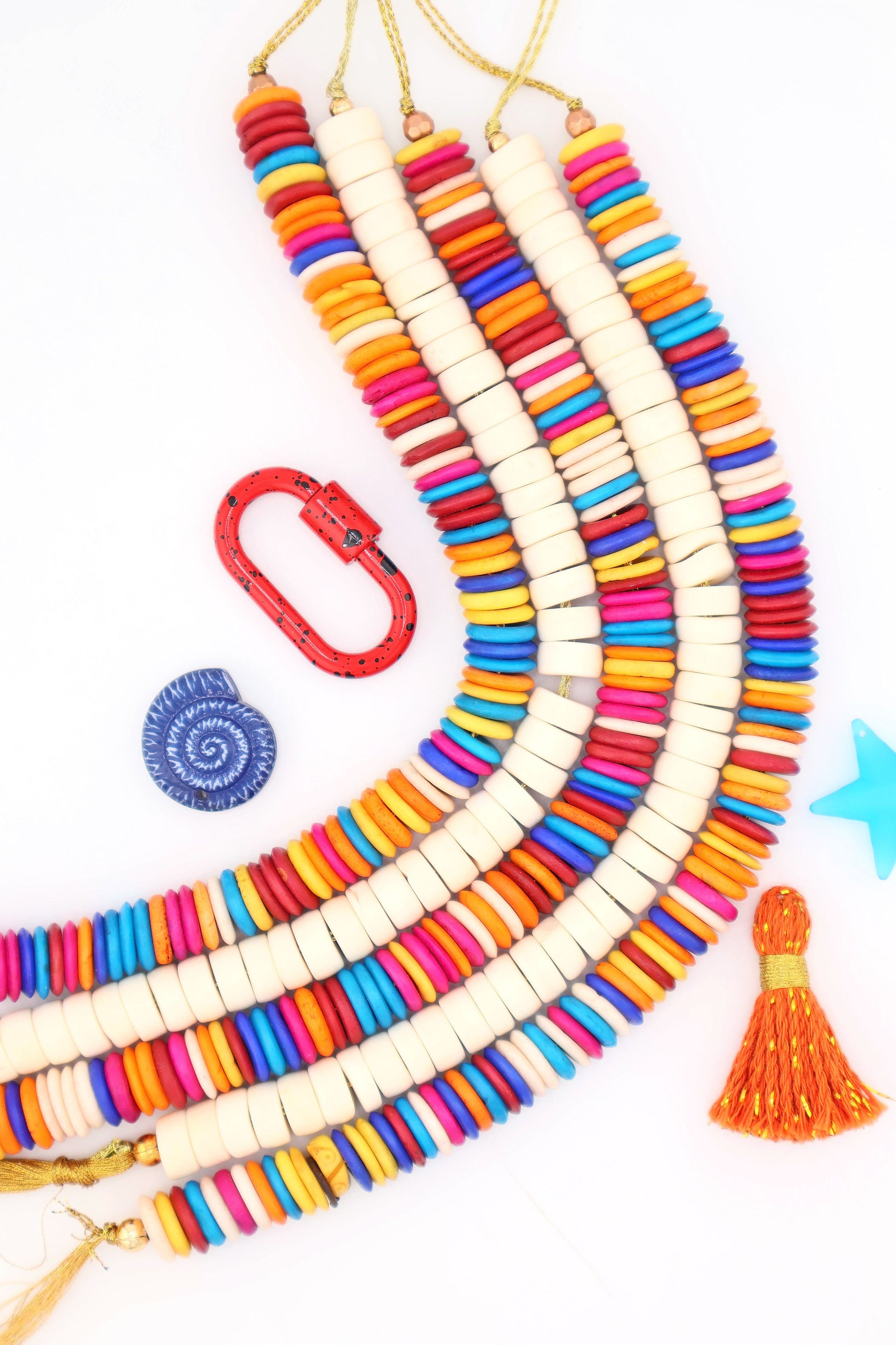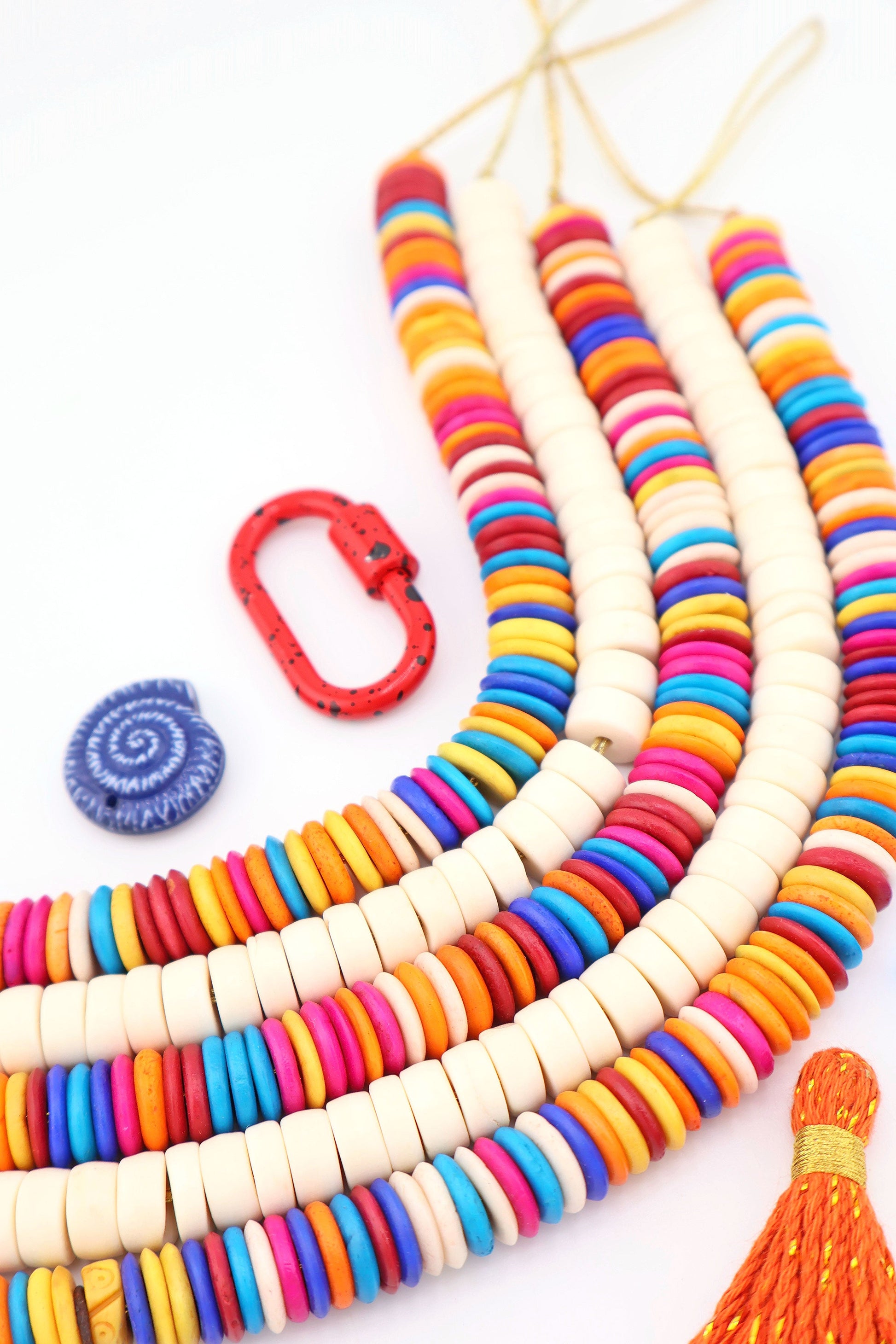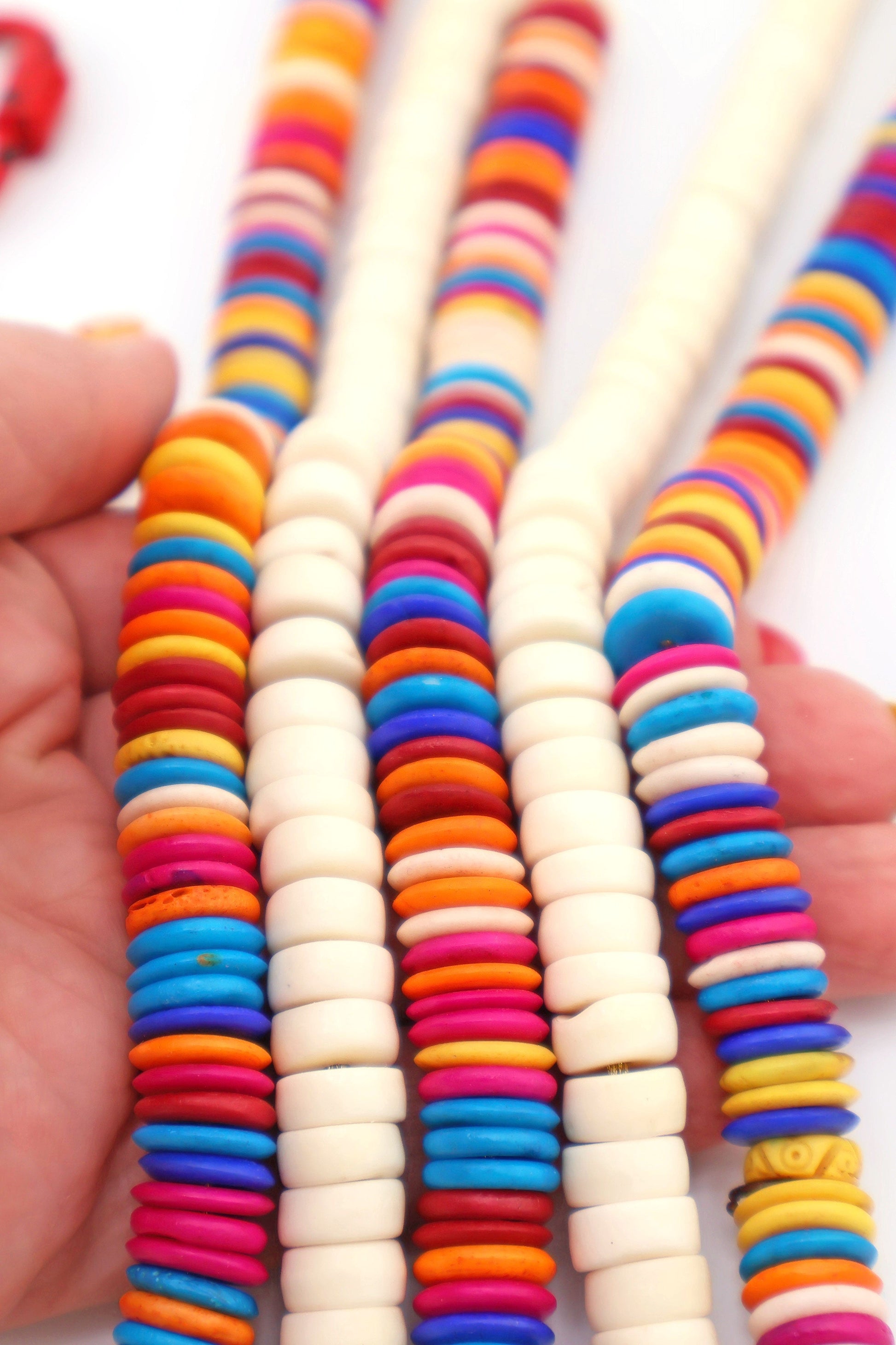 Create a cohesive jewelry collection with this colorful and practical bundle of artisan made heishi disc bone beads!