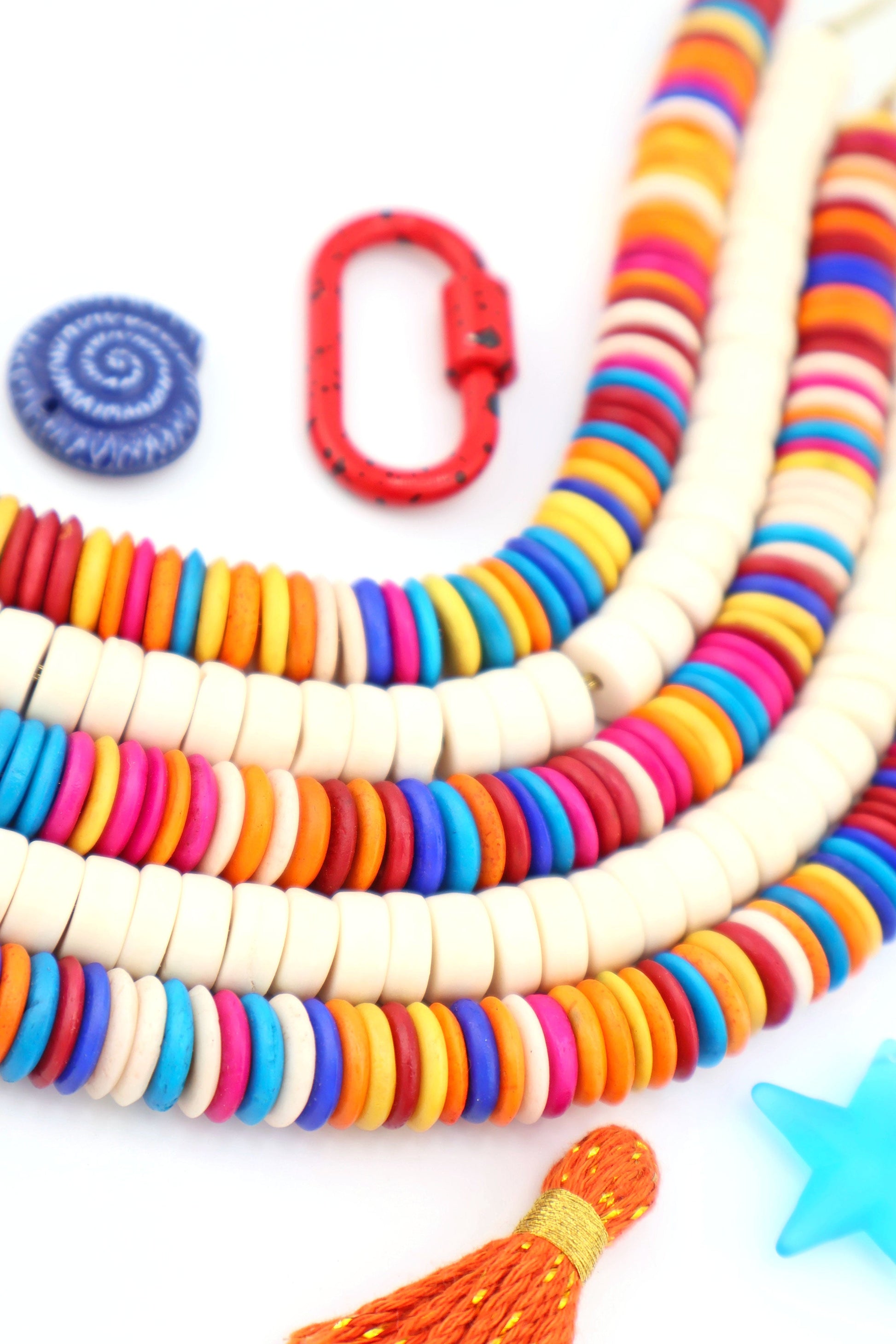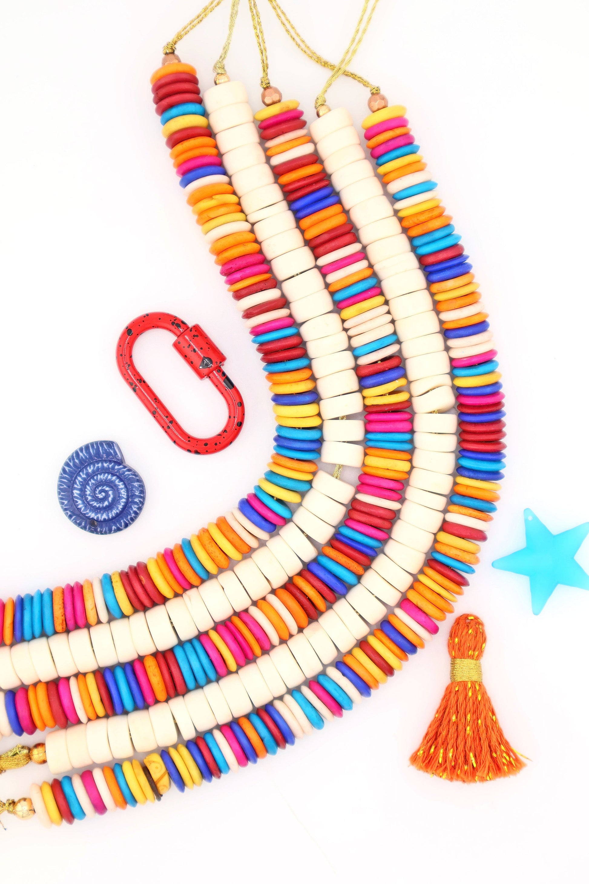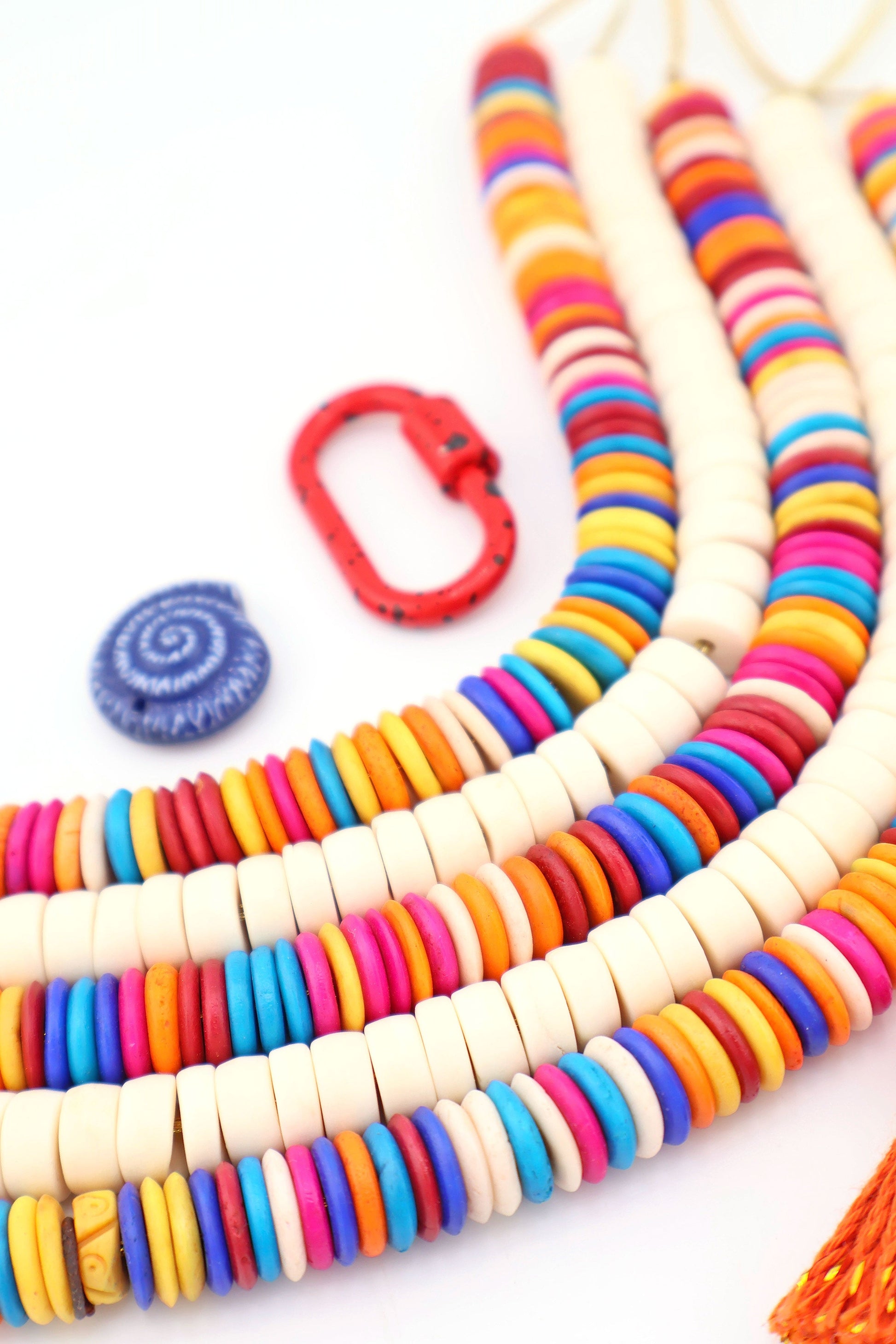 Create a cohesive jewelry collection with this colorful and practical bundle of artisan made heishi disc bone beads!