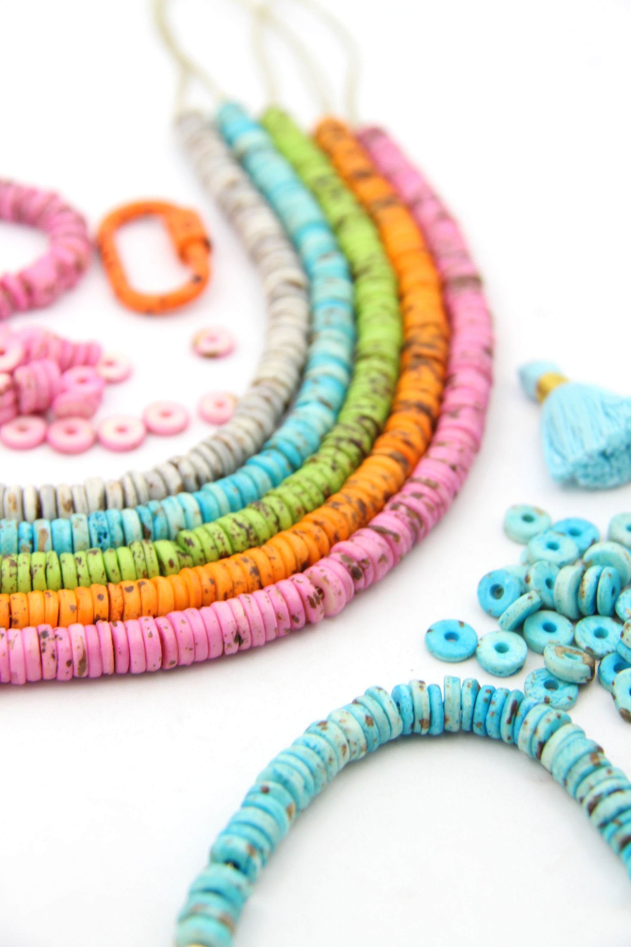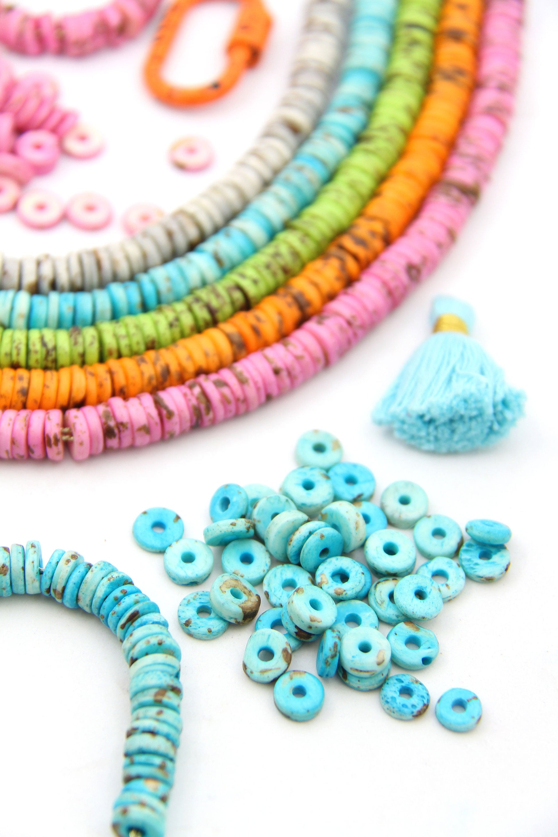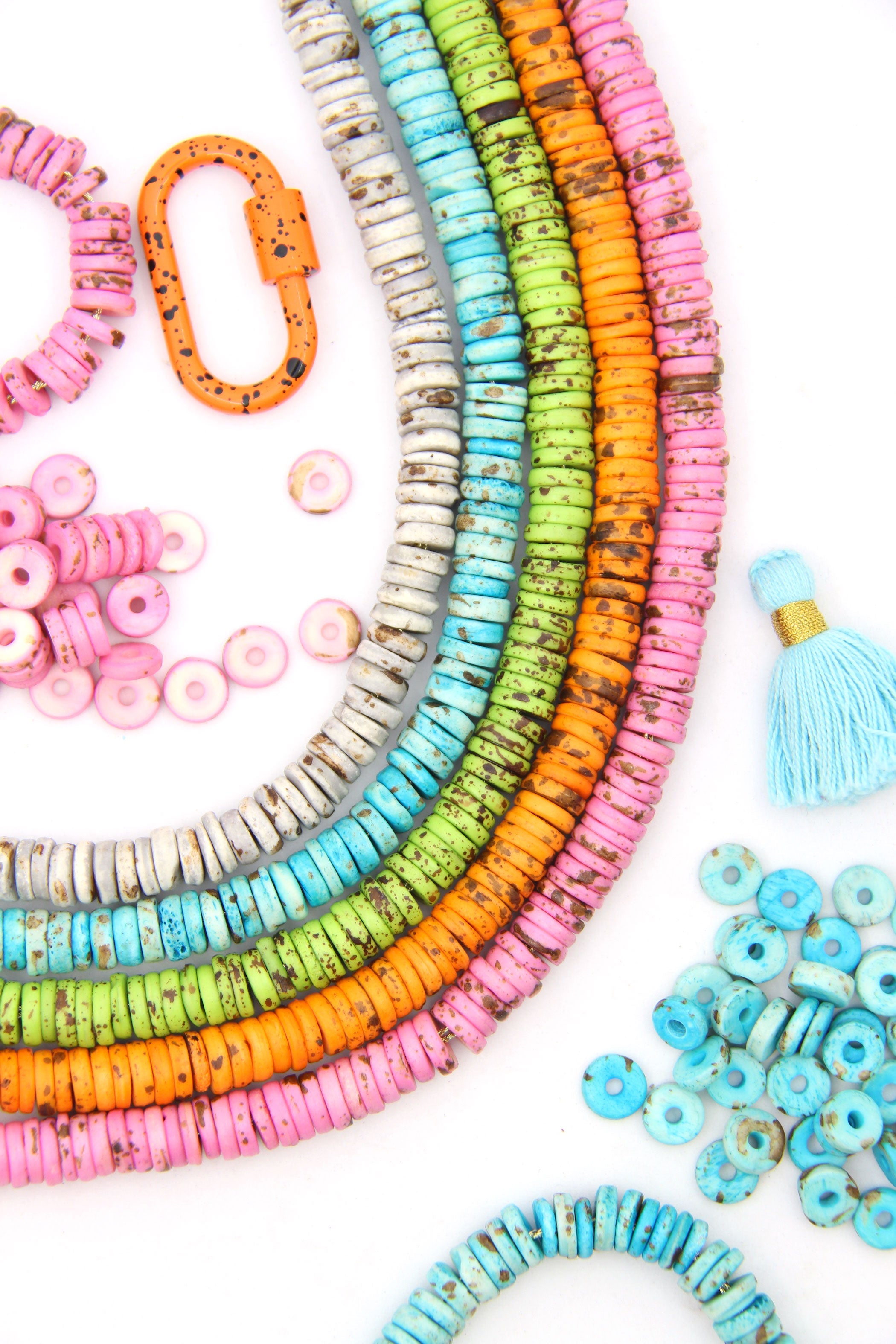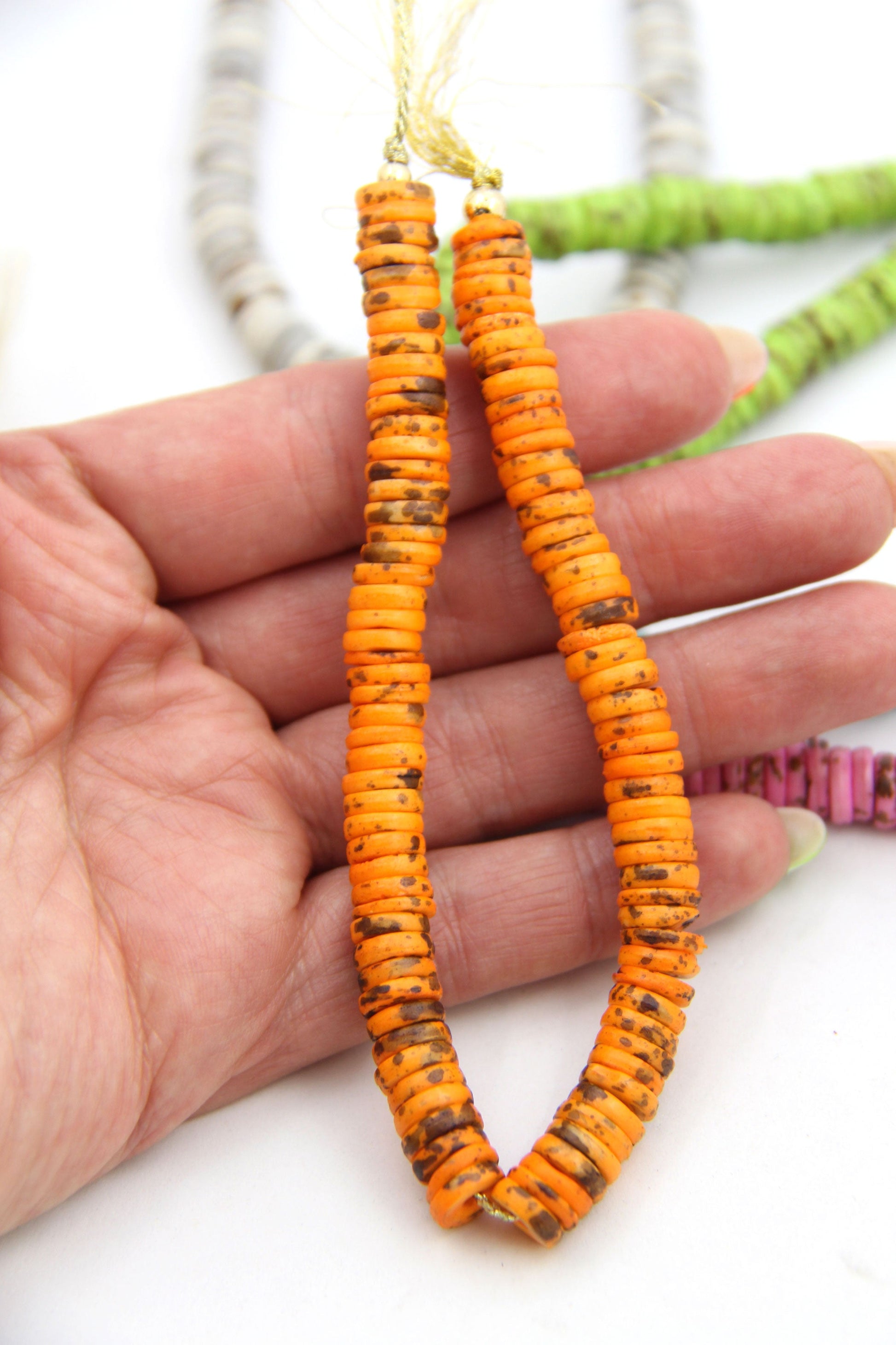 These speckled heishi bone disc beads perfectly imitate nature with their earthy and rich tones. This combo of a great shape and incredible colors lends to creating earthy and bohemian style jewelry. Made in India, from cow bone (cruelty-free) these 8mm heishi beads are perfect for bracelets and spacer beads.