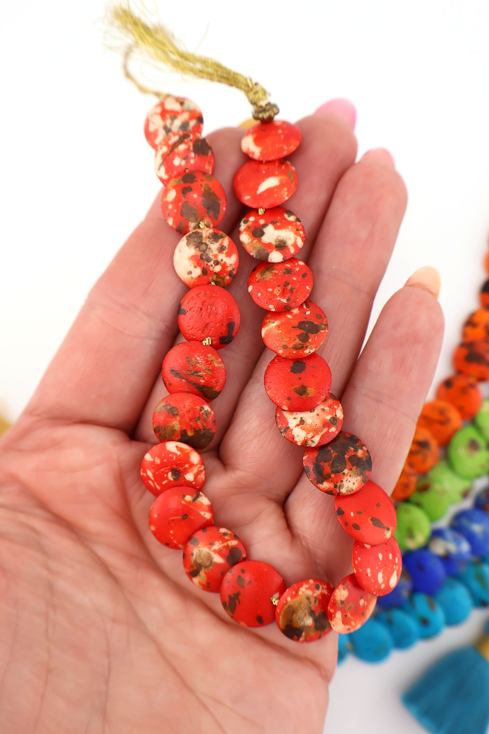 Cascading Coin Speckled Bone Beads, Multi-Colored 12mm Beads