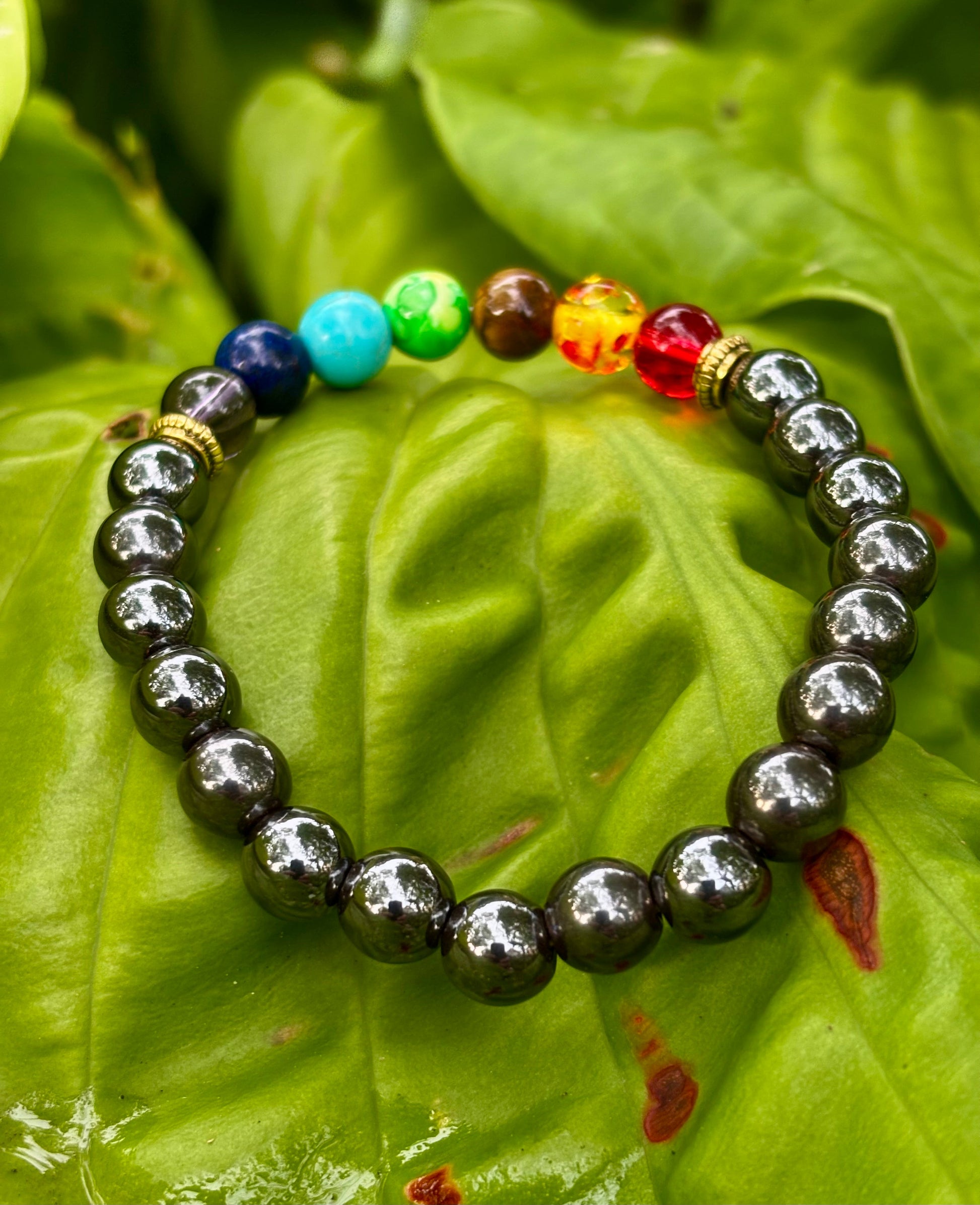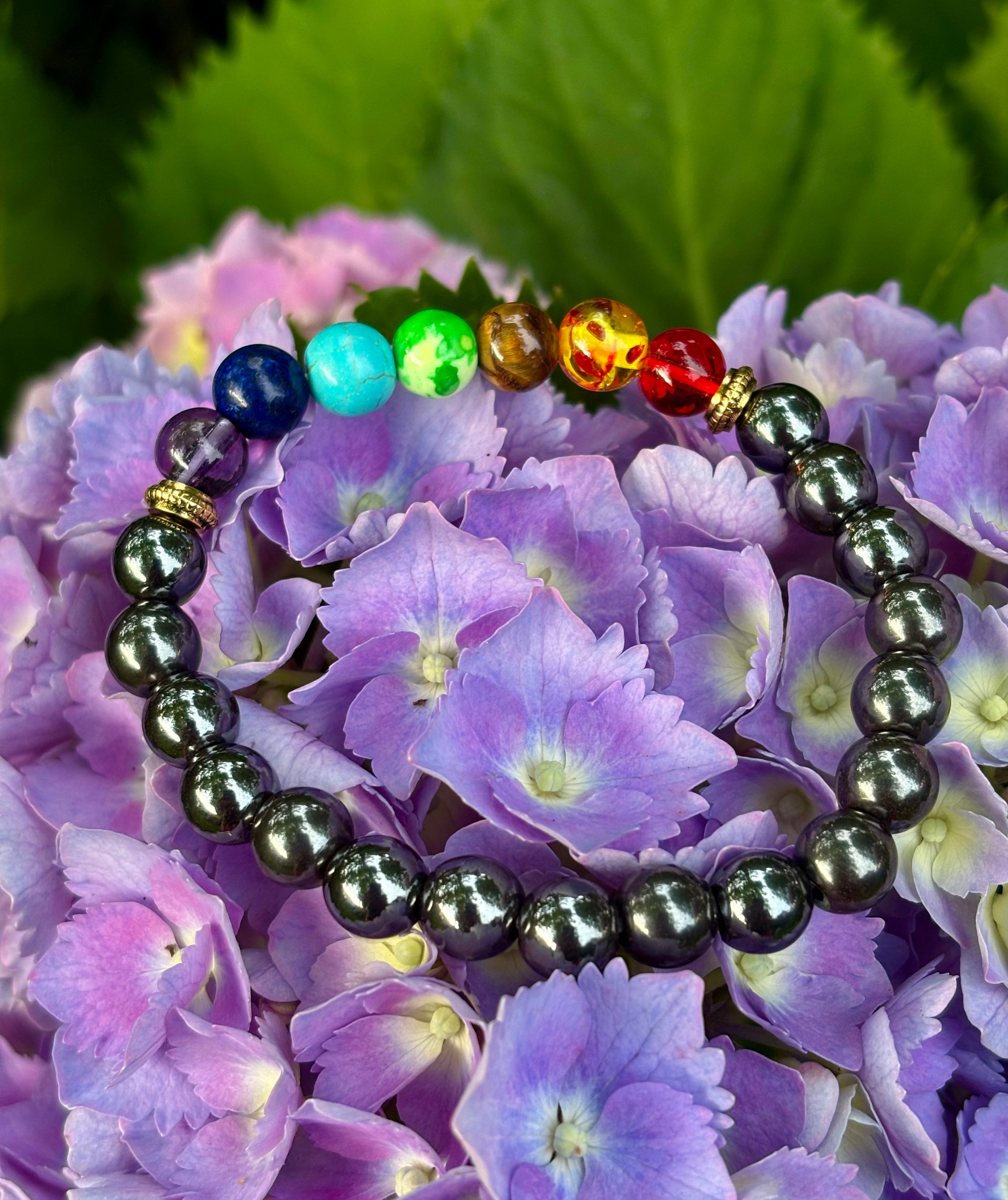 Chakra Healing Beads Bracelet with Hematite - Grounding, Protection & Balance