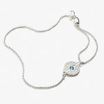 An ancient symbol with a modern shimmer. This sterling silver or 14k gold vermeil bracelet features a bold evil eye charm accented with clear crystal and a smooth, adjustable pull chain for all-day comfort. The charm is slightly larger than others in our Precious Pull Chain collection—adding a little more presence, and a lot more meaning.