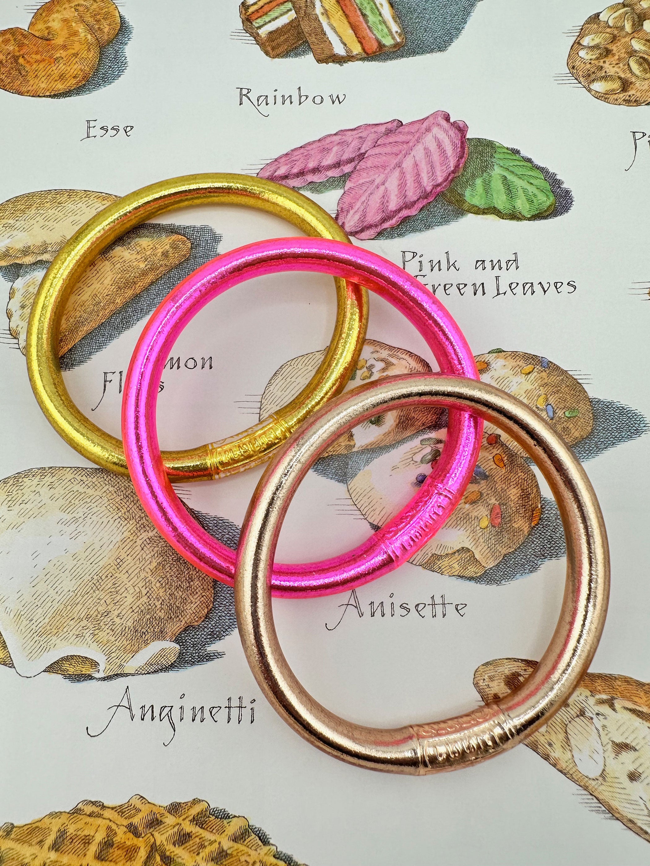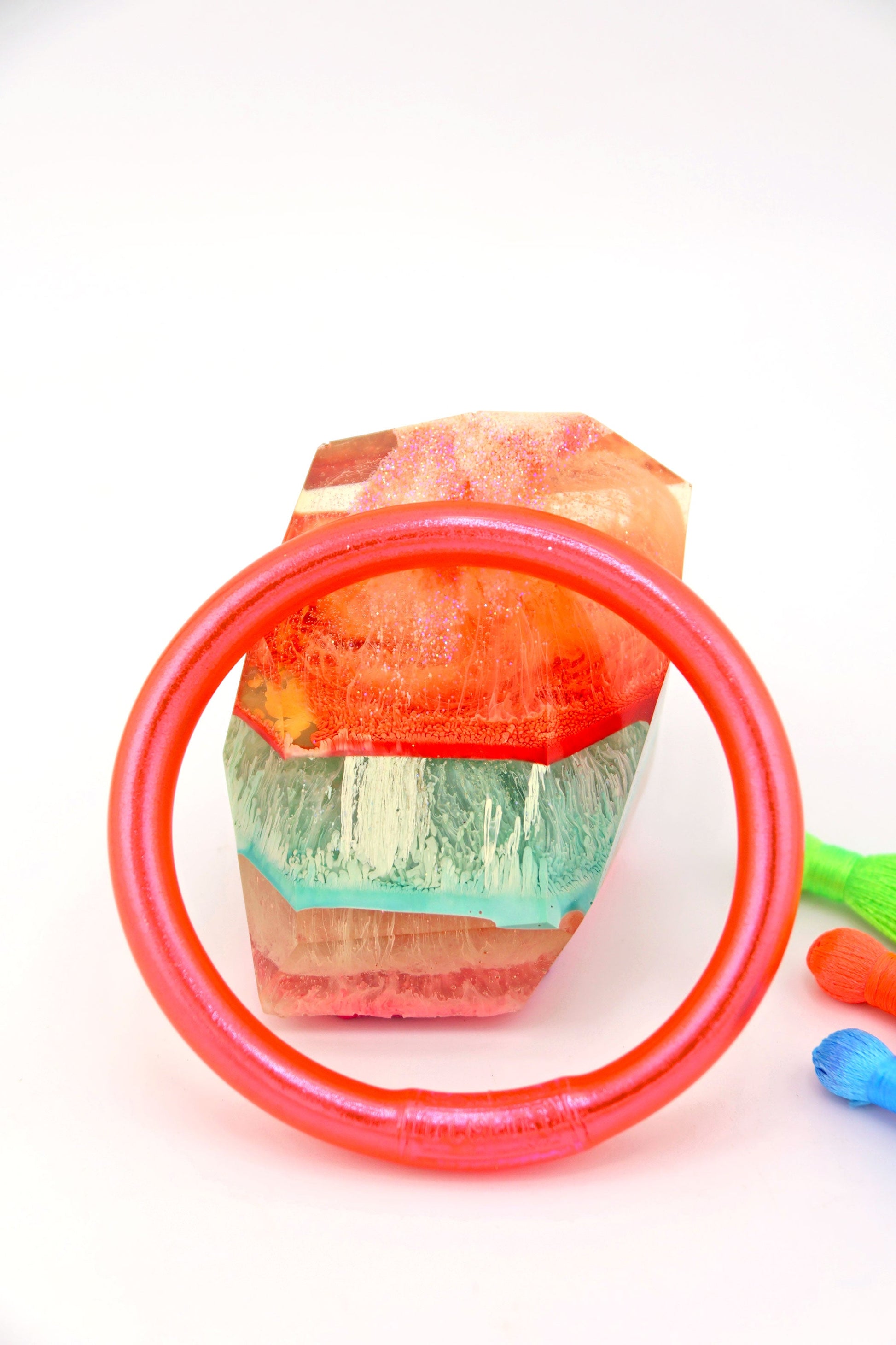 Bangle Color Options: Poppy, Fluo Pink, Champagne, Coral, Orange, Light Gold, Forest, Peacock, Ocean, Midnight, Veri Peri, Silver, Dark Brown