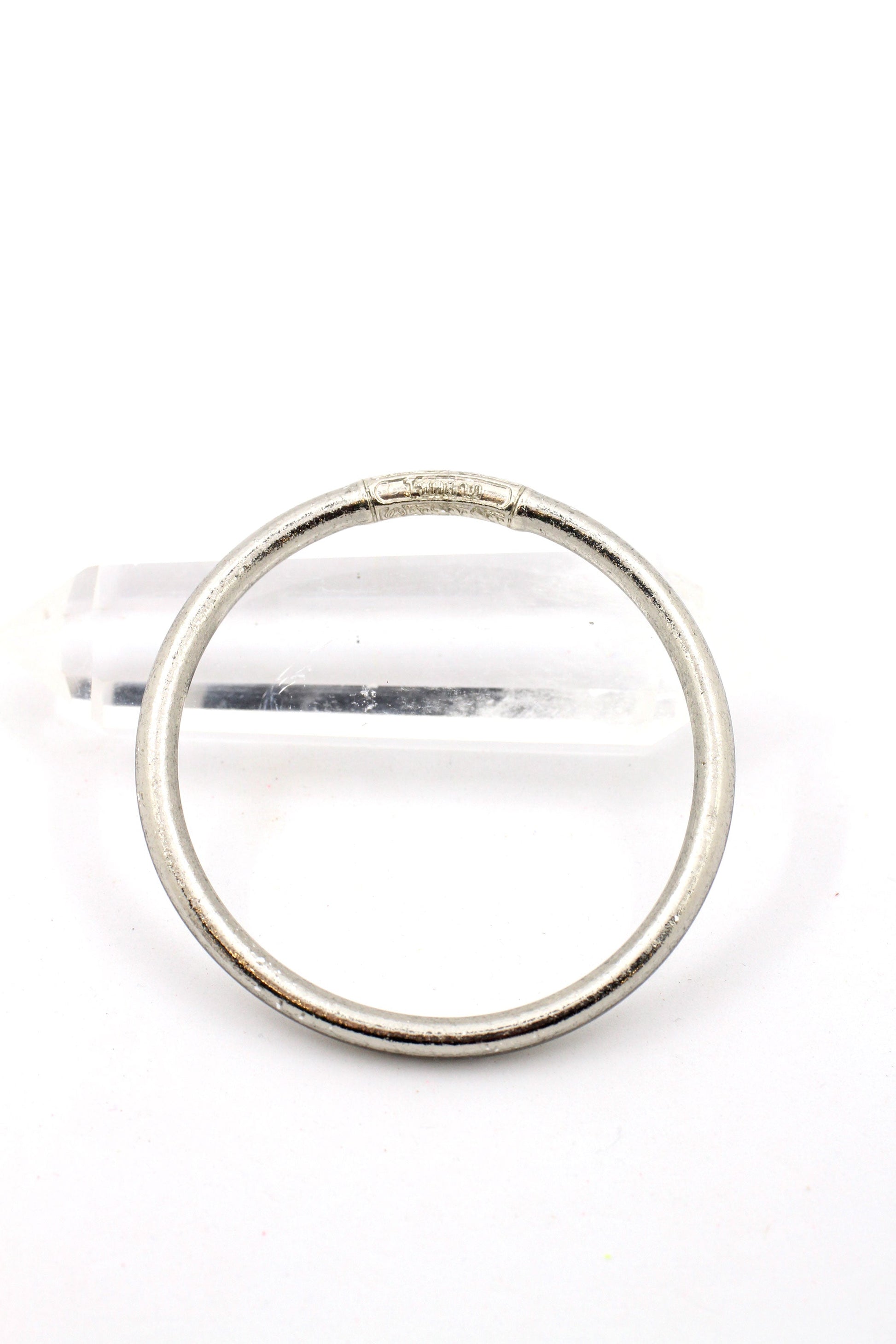 - Each bangle is sealed with a metal mantra tube; one side is for luck, the other for love.