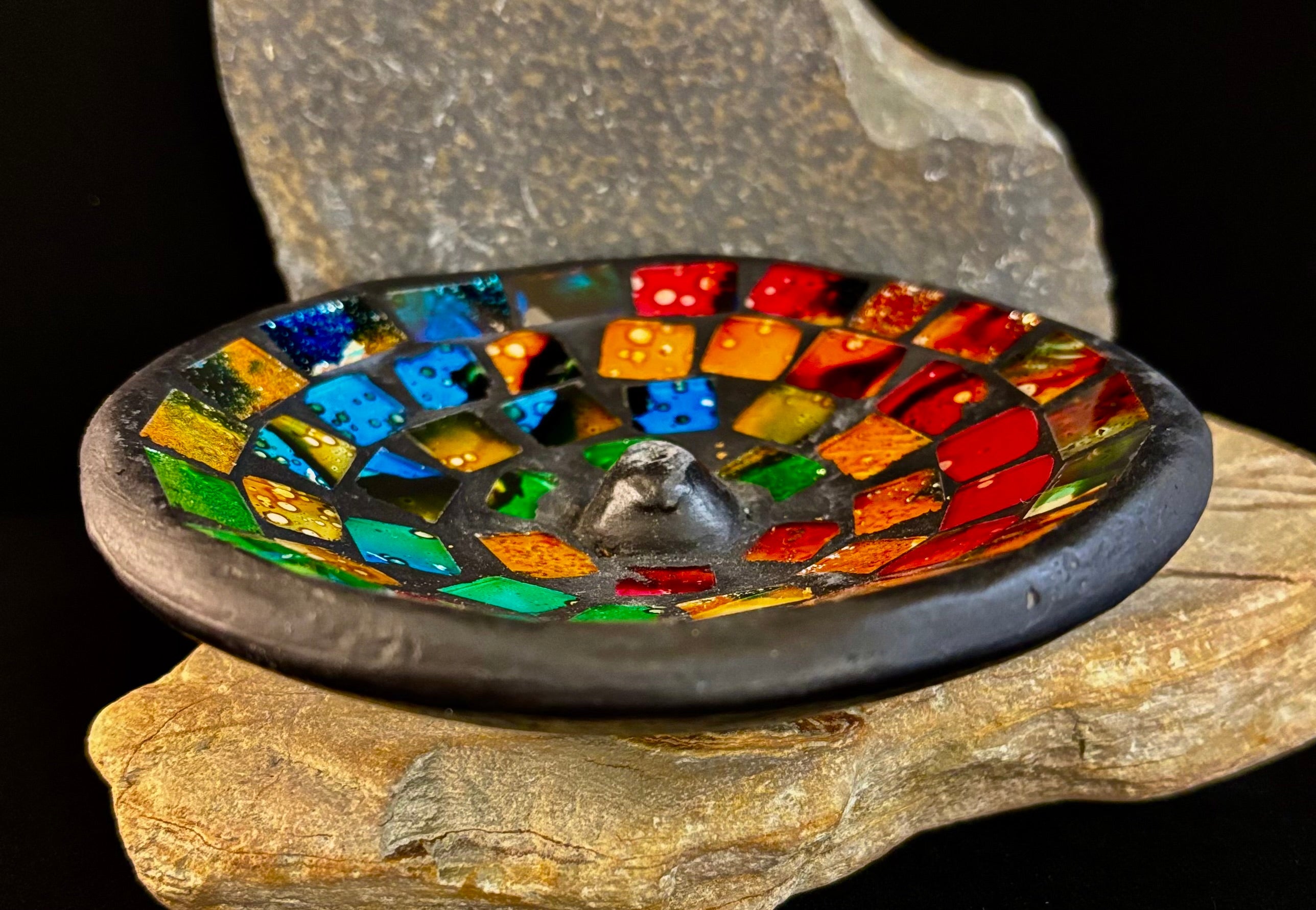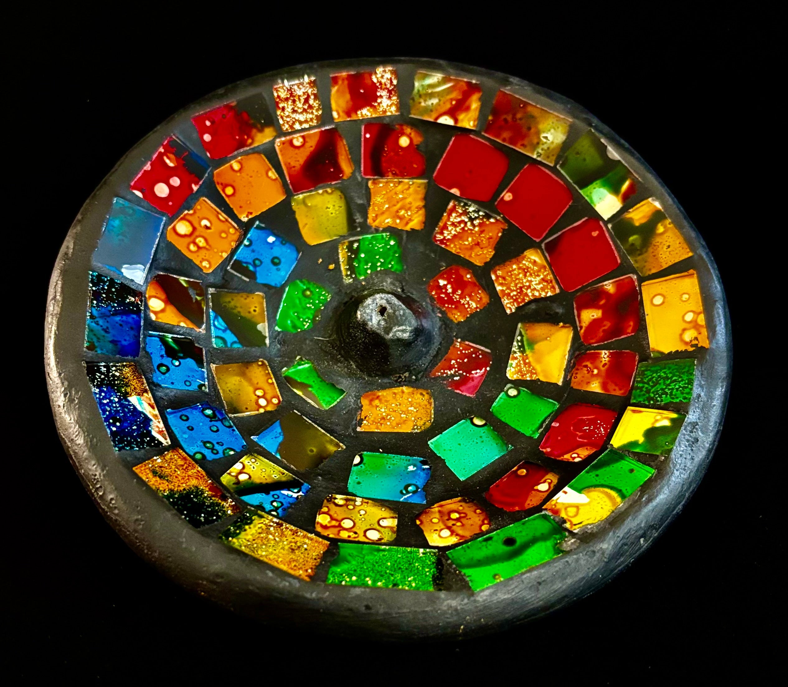 Handcrafted Mosaic Incense Burner | Rainbow Ash Catcher from Indonesia (4.75" Wide)