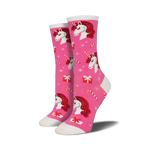 Unicorn Christmas socks: A cheerful explosion of holiday cheer! Celebrate the magic of Christmas in these incredibly fun and festive crew socks for women. Our Unicorn Christmas socks are a candy-colored dream with prancing pink and white unicorns, red and white candy canes, delicate white snowflakes, and joyful presents adorned with yellow ribbons. Sprinkle some extra jingle bells into your yuletide style and let these whimsical socks be a reminder that every season brings its own kind of magic ” just like a unicorn!