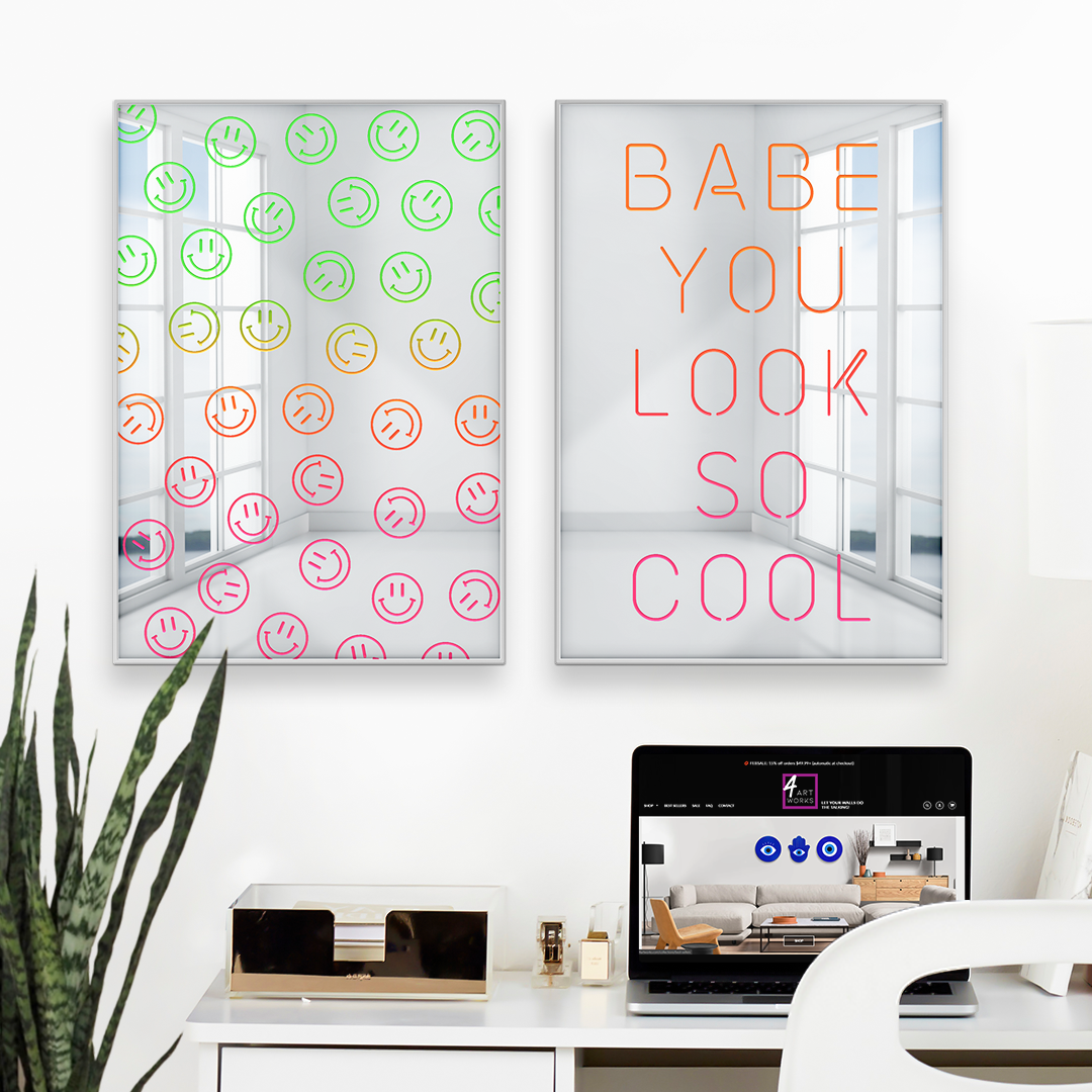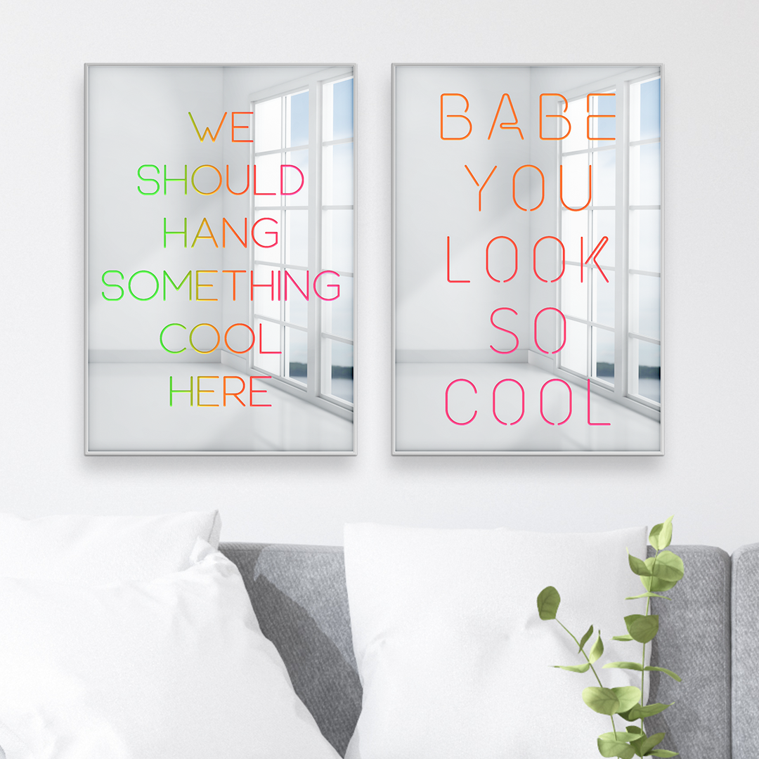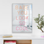 Babe You Look So Cool | Decorative Wall Mirror | Cool Reflective Acrylic Wall Art Decor | Silver Metallic Sheen with Neon Graphics | Ready-to-Hang Modern Inspiration