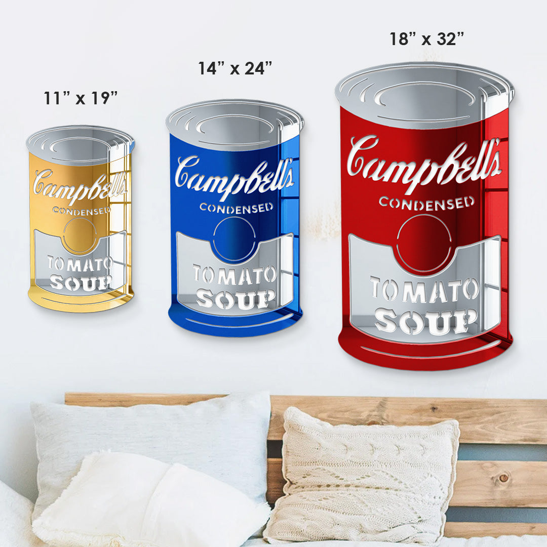 🥫 CLASSIC RETRO POP ART WITH A MODERN TWIST - Art meets mirror when this iconic soup can comes to life with acrylic mirrors in bright, bold colors. Choose a large size for a standalone statement piece, go smaller for a fun wall accent, or line up multiple tins side by side for a classic Warhol look. From minimalist to maximalist, playful to sophisticated, these Campbell’s soup cans will combine with any style, from classic to funky.