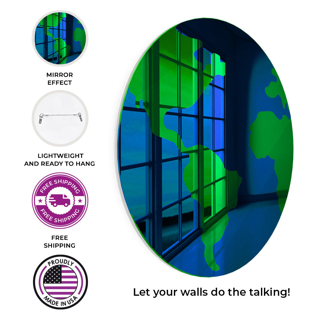 Earth Mirrored Wall Decor | Sleek Global 3D Wall Hanging | Cool World Green and Blue Wall Art for Home or Office | Made in The USA