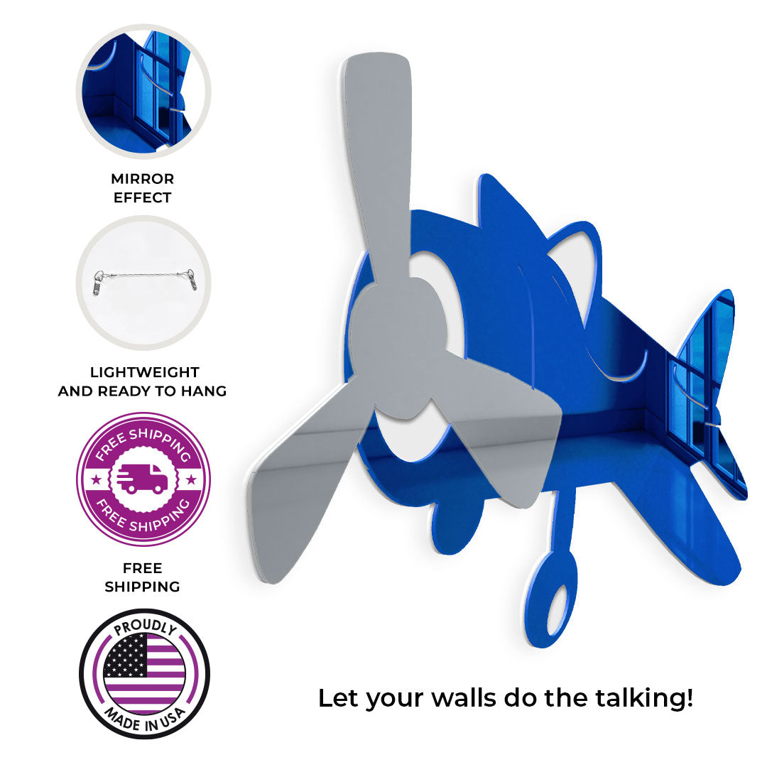 ✈️ IN FLIGHT DECOR - Future pilots will adore these airplane and helicopter wall mirrors. Kids will love the bright shiny mirror finish of these fun, bright wall hangings that look like they’re flying through the sky. The vintage monoplane, retro biplane, and cool helicopter are available individually or as a 3-piece aviation mirror set. The helicopter measures 14x19 inches, the biplane measures 13x19 inches, and the monoplane measures 13x20 inches.