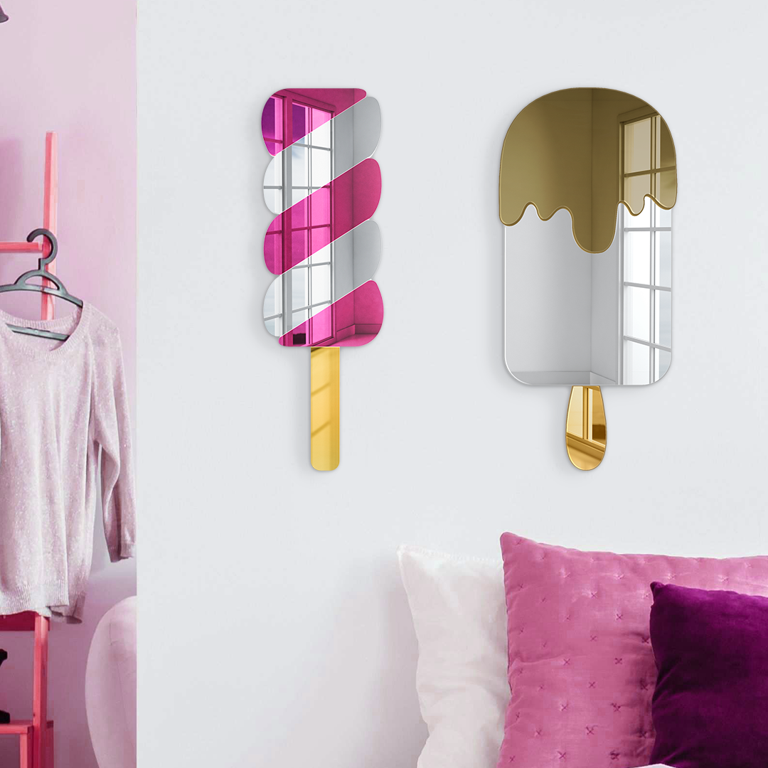 🍭 BRIGHT CANDY COLOR TREAT - Because, who doesn’t like ice cream and popsicles? This sweet, candy-inspired 3D dessert wall art will bring a smile to anyone’s face, from kids to adults. This dessert silhouette designed with sweet tooths in mind is made of layers of sleek silver and colorful pink or purple acrylic with a mirrored finish to create a 3D look that pops.