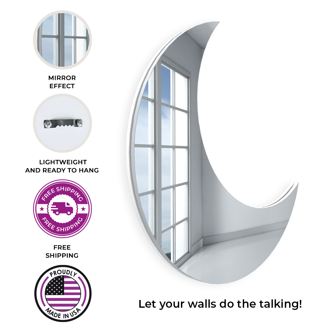 Waning Crescent Moon Decorative Wall Mirror | Cool Acrylic Wall Hanging for Home, Dorm, Meditation Room, Vanity, or Nursery | Dreamy Wall Accent | Décor Made in The USA
