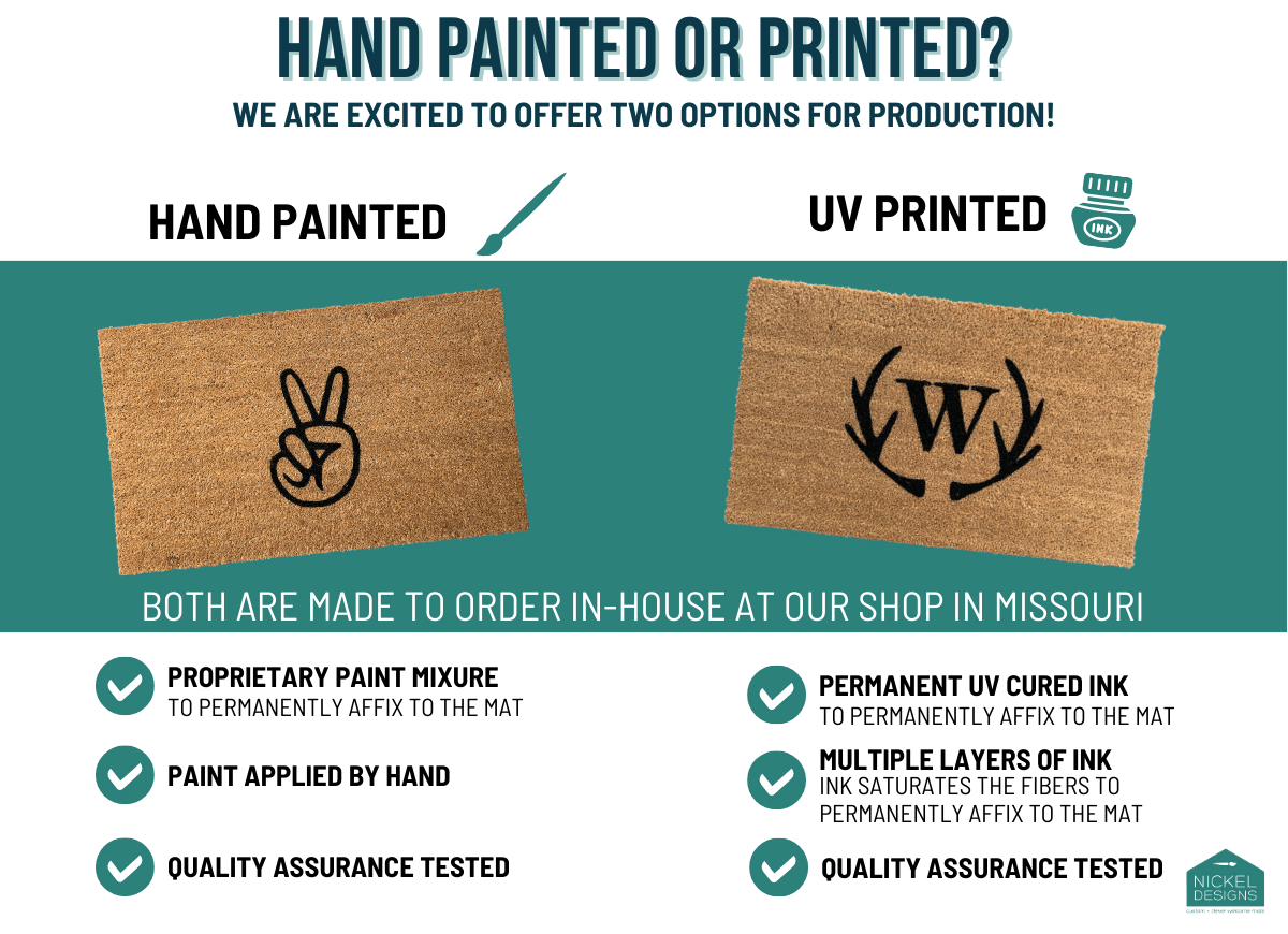 • Permanent ink and UV sealant protects your custom doormat from the elements.
