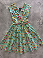 The Greta is everything you could want and more!  Shown in our Ice Cream print, this vintage style cotton dress features a gathered surplice neckline, cummerbund waist with figure flattering gathers, a vintage inspired twirl-worthy skirt with hidden side pockets, and a back zippered closure.