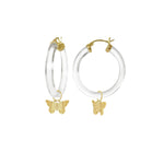 The classic lucite hoop is perfect for every season. The golden charm is a fun and cute way to spice up your ear game!