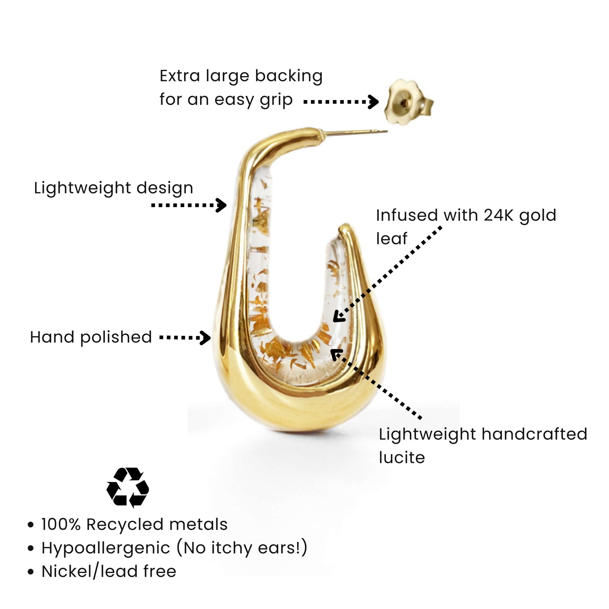 Artful. Opulent. Unforgettable. The chunky Drop Earrings are a masterclass in modern luxury. Featuring a fluid, sculptural silhouette, each piece pairs glossy lucite with gleaming gold-tone curves.