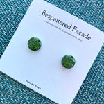 Earrings are made from a lightweight wood base, hand-painted glitter front, and topped with a glossy resin topcoat. Earring backs are finished with silver leaf to match the nickel-free hardware. All earrings are handmade by me in Charleston, SC. They are truly one of a kind, please expect slight differences in color and pattern. You will receive the exact earrings depicted in the photo.