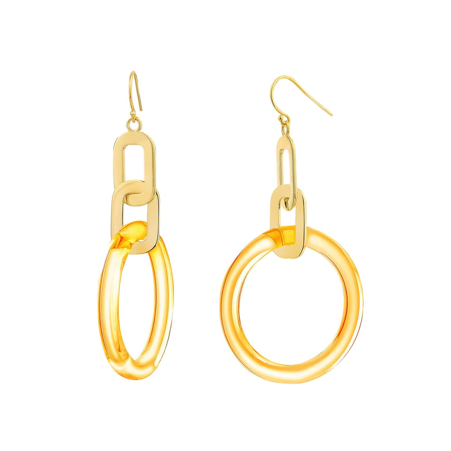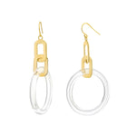 These drop and dangle earrings are a statement maker must-have. The lucite mixed with the golden metal is a silky and smooth design that can be worn day to night. The gold paperclip links elevate this earring for a luxe look.