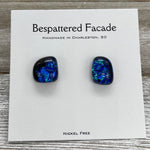 All Magic Drop earrings are made of dichroic glass; the earring posts and findings are made of nickel-free stainless steel. Dichroic means "two colors" and when this glass is viewed from different angles it shifts between multiple iridescent colors. Each piece is truly one of a kind, and dichroic glass is difficult to photograph due to its unique properties, please expect slight differences in color and pattern. You will receive the exact set of earrings pictured, and they're much more dramatic in person.