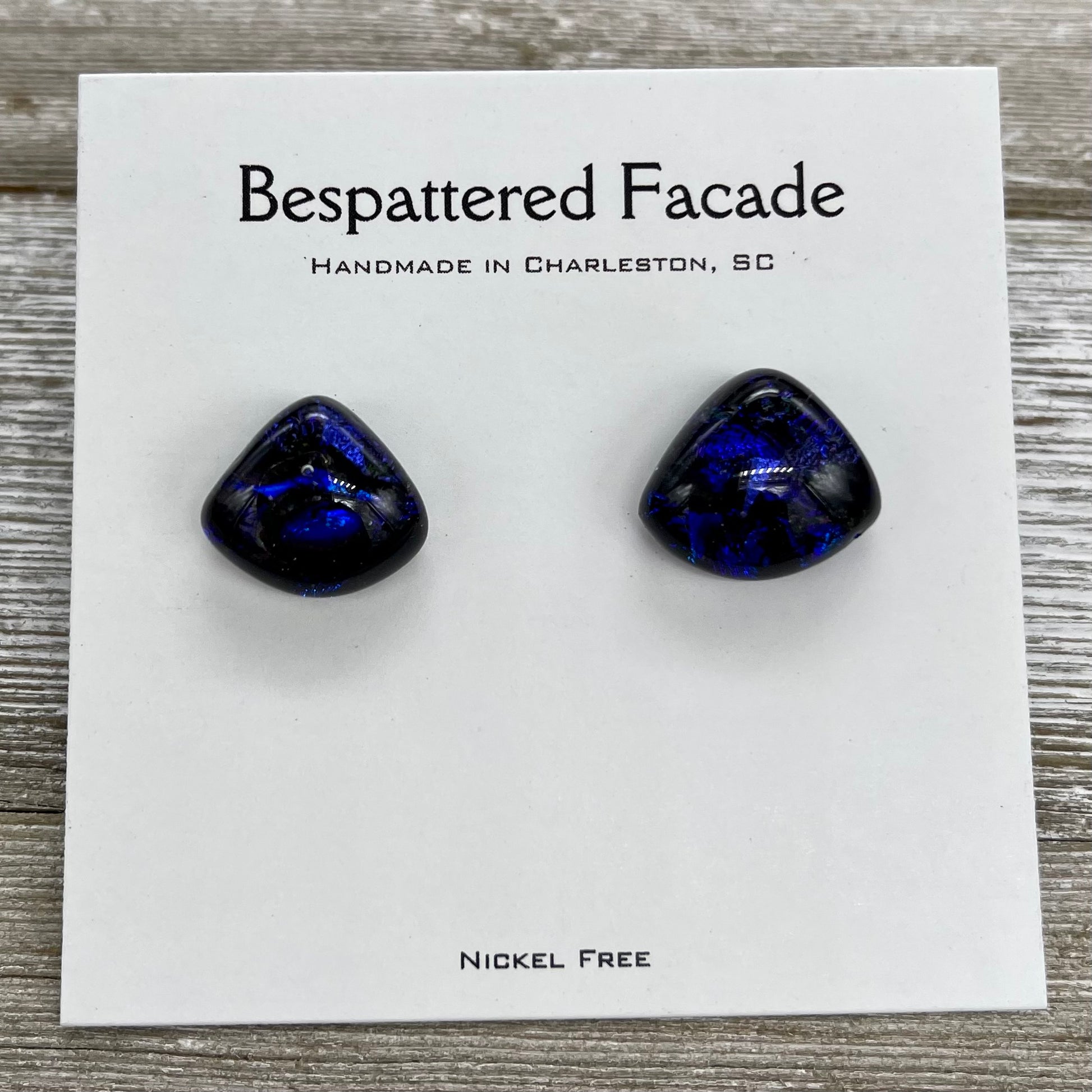 All Magic Drop earrings are made of dichroic glass; the earring posts and findings are made of nickel-free stainless steel. Dichroic means "two colors" and when this glass is viewed from different angles it shifts between multiple iridescent colors. Each piece is truly one of a kind, and dichroic glass is difficult to photograph due to its unique properties, please expect slight differences in color and pattern. You will receive the exact set of earrings pictured, and they're much more dramatic in person.