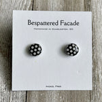 Earrings are crafted from a lightweight wood base, trimmed with metallic leaf, topped with a glossy resin topcoat, and finished with nickel-free hardware. Each pair is handmade to order and they are truly one of a kind. Photos are for example purposes only and depict earrings similar to what you will receive, please expect slight differences in color and pattern.