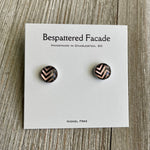 Earrings are crafted from a lightweight wood base, trimmed with metallic leaf, topped with a glossy resin topcoat, and finished with nickel-free hardware. Each pair is handmade to order and they are truly one of a kind. Photos are for example purposes only and depict earrings similar to what you will receive, please expect slight differences in color and pattern.