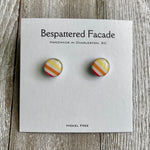 Earrings are crafted from a lightweight wood base, trimmed with metallic leaf, topped with a glossy resin topcoat, and finished with nickel-free hardware. Each pair is handmade to order and they are truly one of a kind. Photos are for example purposes only and depict earrings similar to what you will receive, please expect slight differences in color and pattern.
