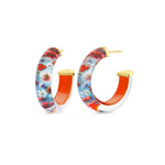 The mix of wild flowers makes a fun boho chic look. The orange hand painted enamel is a vibrant pop of color that makes each hoop even more unique.