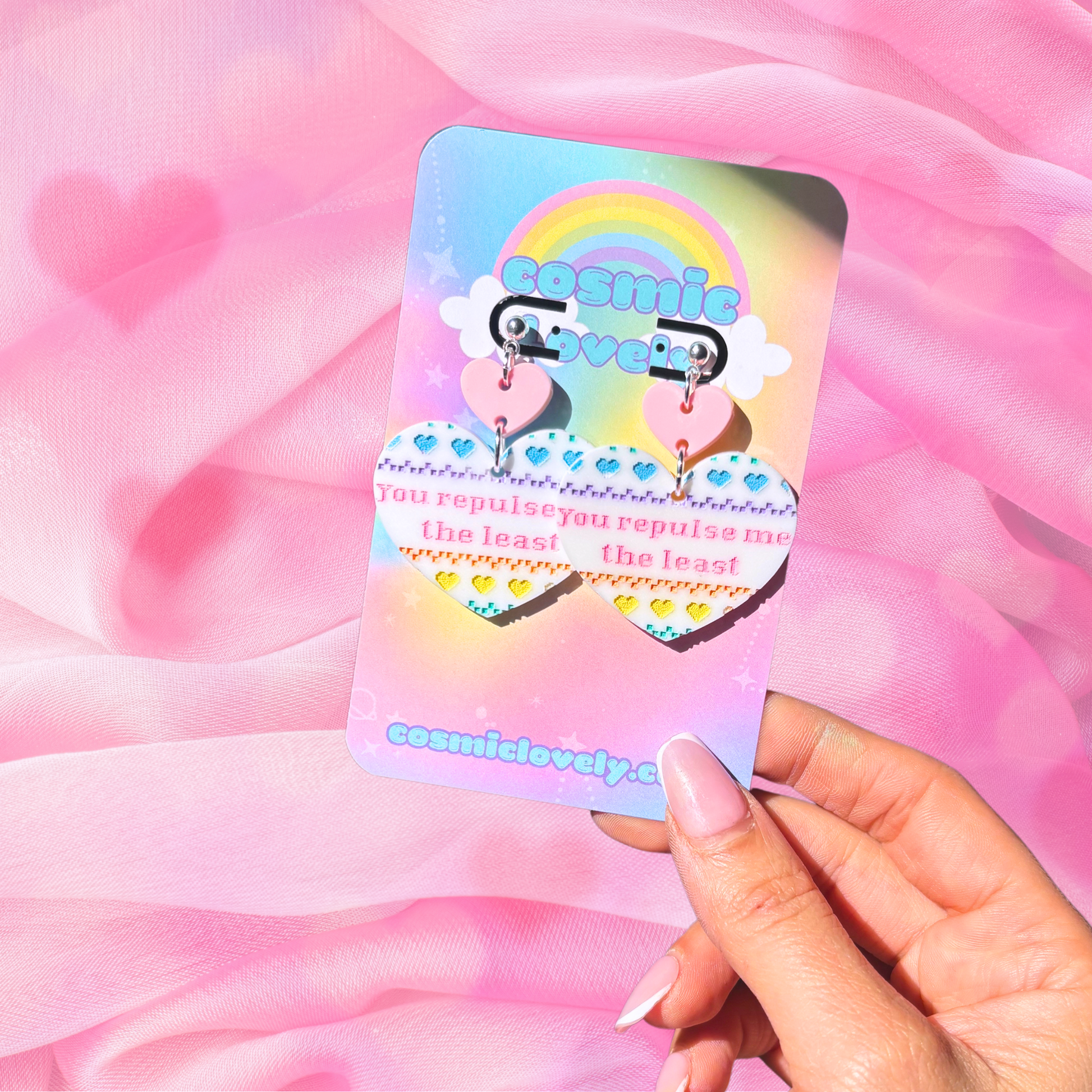 This listing is for ONE Pair of You Repulse me the least anti-valentines day Earrings