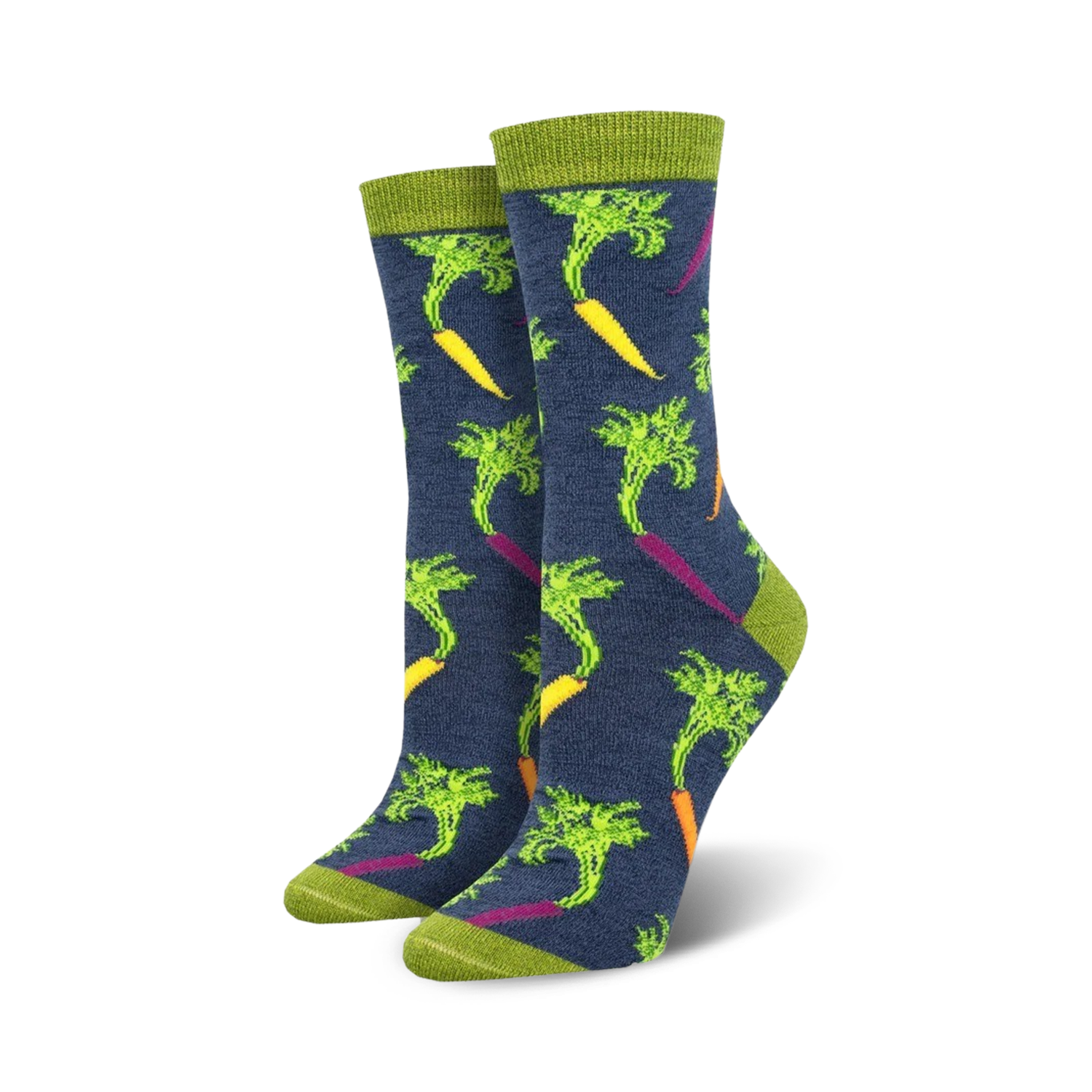 Carrot Rainbow Bamboo Socks: A Fun and Colorful Way to Show Off Your Roots! Did you know that carrots come in different colors, including purple, orange and yellow? Now you can wear your colorful carrots with our Carrot Rainbow Bamboo Socks. Whether you're a gardener, a foodie, or just love all things carrots, these socks are a fun and unique way to express yourself. Put a spring in your step (and a carrot in a sock) with these playful carrot-themed socks.