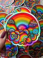 This is it, the moment we've all been waiting for, the opportunity to "live" inside the rainbow... except it's a sticker on holographic vinyl that flashes a rainbow of colors in the light.
