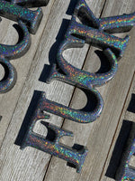It's my favorite word, and if it isn't yours as well... you should really reconsider. This rainbow word art features a fantastically sparkly iridescent rainbow effect. Each fuck I have to give measures 1/2 inch thick, 2.5 inches tall and 6.5 inches long. The world's most versatile word is made of resin and includes a glittery rainbow effect with a glossy black back.